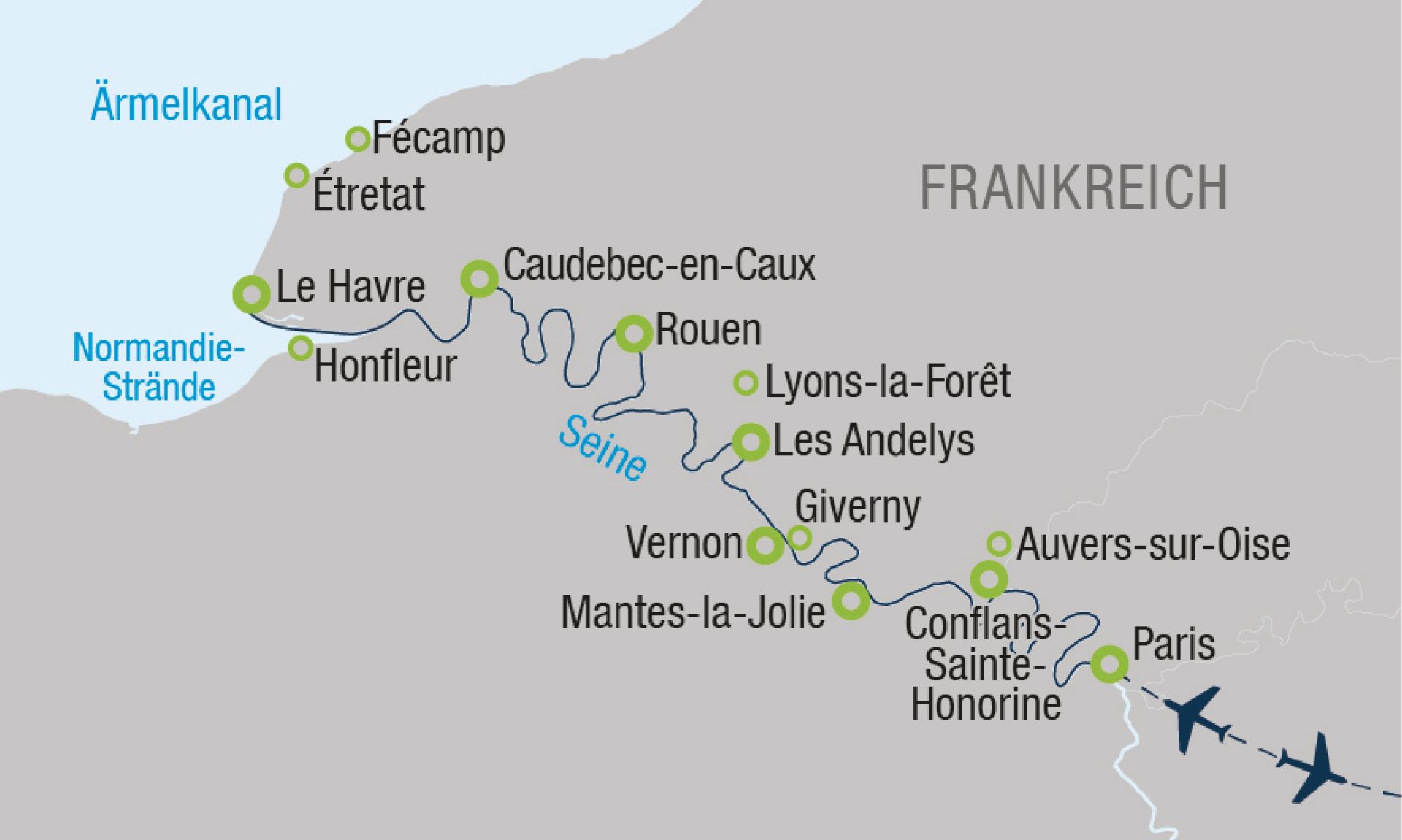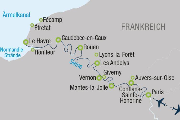 Erleben Sie die Magie der Seine - zwischen Paris, der Stadt der Liebe, und der wildromantischen Atlantikküste durchquert der Fluss die Normandie, eine der eindrucksvollsten Landschaften Frankreichs. Freuen Sie sich auf Höhepunkte wie das mittelalterliche Juwel Honfleur, die geschichtsträchtige Stadt Rouen und die imposante Alabasterküste mit ihren spektakulären Kreidefelsen bei Étretat.