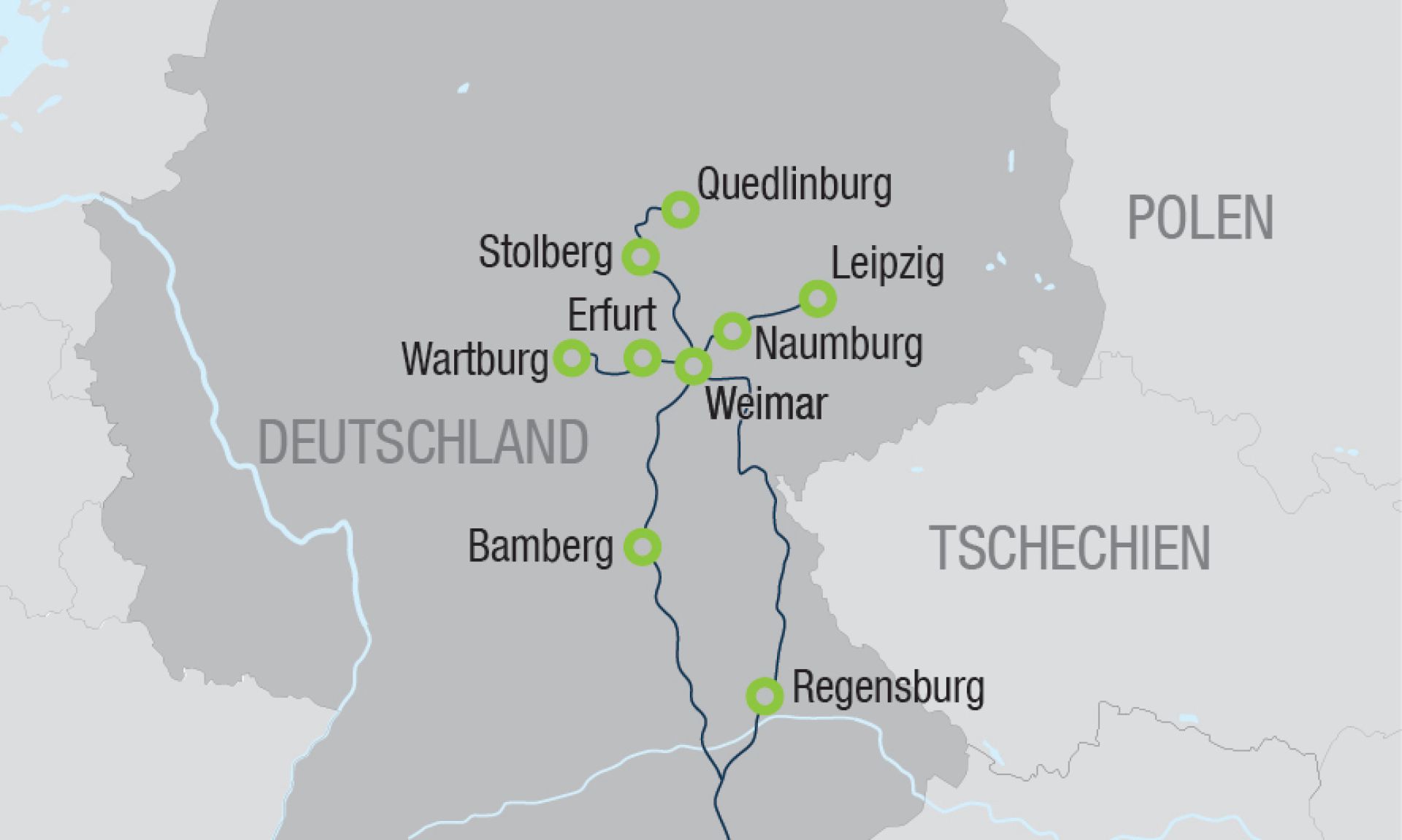 Begeben Sie sich mit Idealtours in Thüringen auf die Spuren der Europäischen Kultur- und Musikgeschichte. Mit Helmut Hofer heften Sie sich an die Fährten von Bach, Goethe und Luther und entdecken romantische Fachwerkhäuser, mittelalterliche Städte und Denkmäler der Deutschen Klassik. Lassen Sie sich von den kulturellen Höhepunkten auf dieser Reise begeistern!