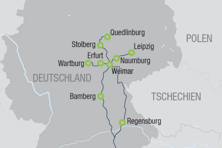 Anreise über München nach Bamberg (Mittagspause) - in Weimar angekommen unternehmen Sie nach dem Zimmerbezug einen Spaziergang mit Ihrer Reiseleitung.