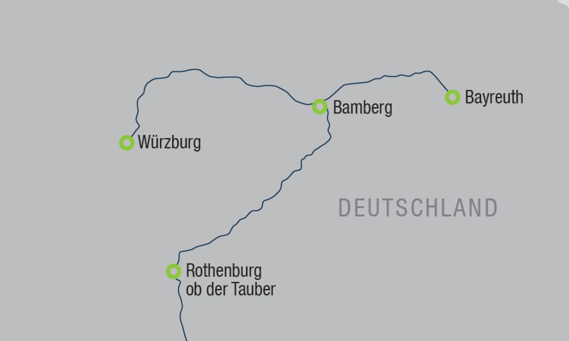 Nach dem Frühstück Fahrt nach Bayreuth - Stadtführung mit Einblicke in die reiche Geschichte der Stadt, die für ihre Fränkische Braukultur bekannt ist - Zeit zur freien Verfügung - Rückfahrt nach Bamberg, wo eine idyllische Bootsfahrt auf der Regnitz den Tag abrundet.