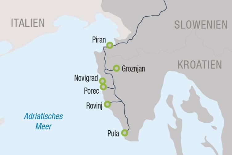 Historische Städtchen, kleine Fischerdörfer mit malerischen Häfen, azurblaues Meer, unzählige kleine Fels- und Kiesbuchten - all das erwartet Sie im wunderschönen Istrien. Begeben Sie sich auf einen Streifzug durch Natur, Kultur & Kulinarik im westlichen Zipfel Kroatiens.