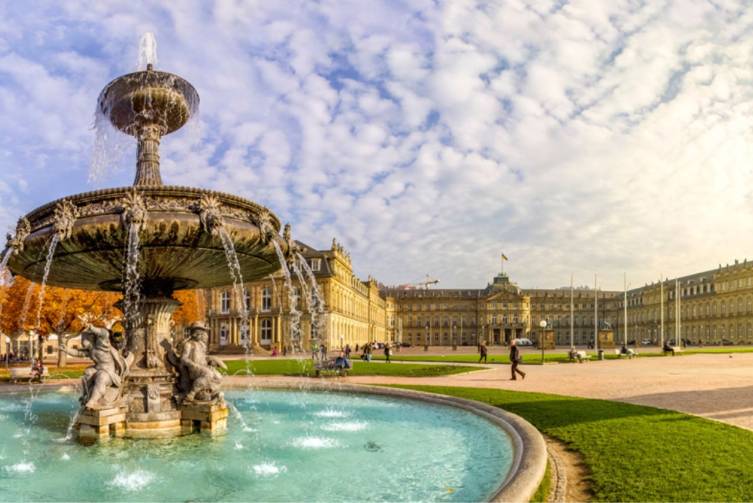 Imposant steht das Neue Schloss im Herzen der Landeshauptstadt Stuttgart. Der Spätbarockbau, eines der letzten großen Stadtschlösser Süddeutschlands, erinnert an die französischen Vorbilder des 17. Jahrhunderts. Heute sind im Neuen Schloss Finanz- und Kultusministerium untergebracht.