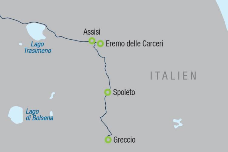 Vormittags Fahrt nach Greccio inkl. Messe - an diesem magischen Ort erfand Franziskus das Krippenspiel und gehört mit Sicherheit zu den Lieblingsorten des Heiligen Franziskus - Rückfahrt über Spoleto, mit Mittagspause in Eigenregie, zurück nach Assisi - nachmittags Spaziergang mit Ihrer Reiseleitung zur bekannten Portiunculakirche - Abendessen im Hotel.