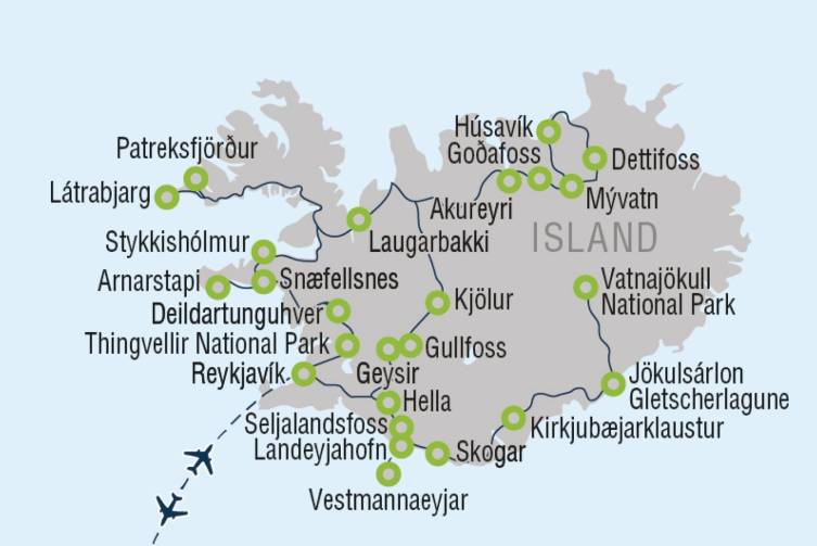 Transfer zum Flughafen Keflavík - Rückflug nach München und Heimreise nach Tirol.