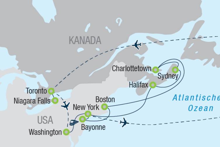 Am frühen Morgen erreicht das Schiff New York - Ausschiffung - Transfer zum Flughafen und Rückflug nach München.