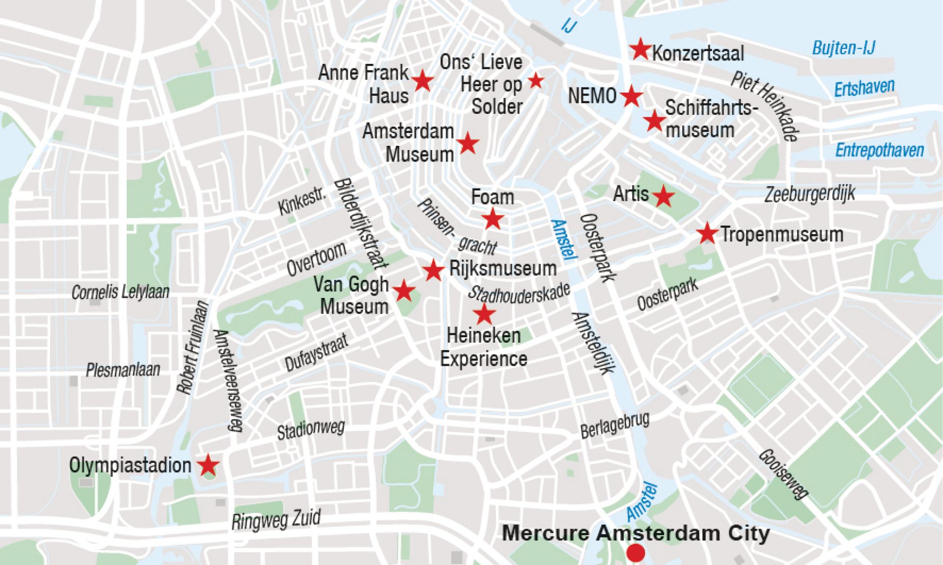 Heute können Sie mit Ihrer Idealtours-Reisebegleitung einen Ausflug zum Muiderslot, eine der am besten erhaltenen mittelalterlichen Burgen der Niederlande, unternehmen - die beeindruckende Architektur und die historischen Ausstellungen entführen Sie ins 13. Jahrhundert - umgeben von Gärten und Wasser bietet die Burg auch schöne Spazierwege - ein idealer Ausgleich zum turbulenten Großstadt-Leben in Amsterdam (fakultativ, € 40,-) - der Nachmittag steht zur freien Verfügung - Amsterdam bietet eine Fülle an kulturellen Highlights: das trendige Jordaan-Viertel begeistert mit charmanten Cafés und Boutiquen oder die NDSM-Werft, ein ehemaliges Industriegelände, hat sich zu einem kreativen Hotspot mit Street Art und innovativen Events entwickelt - Ihre Reisebegleitung steht Ihnen gerne mit Rat und Tat zur Seite!