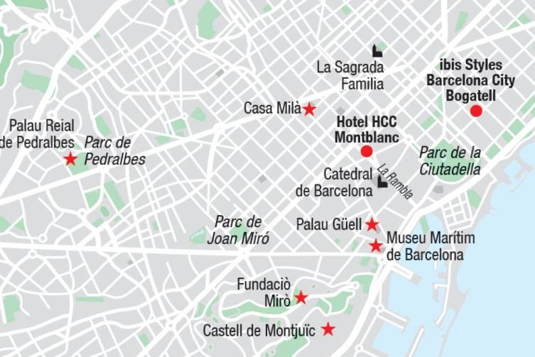 Das Hotel HCC Montblanc*** heißt Sie im Herzen von Barcelona, nur wenige Gehminuten von der Plaça de Catalunya und dem Gotischen Viertel herzlich willkommen. Das Hotel bietet kostenloses W-Lan, eine 24-Stunden-Rezeption sowie eine Bar bzw. Lounge-Terrasse. Für warme Tage gibt es auf dem Dach bzw. der Terrasse einen Außenpool mit Liegen und eine Sonnenterrasse zum Relaxen. Die komfortabel und modern eingerichteten Zimmer verfügen über Klimaanlage, Satelliten- oder Flachbild-TV, ein eigenes Badezimmer mit Haartrockner, Minibar und Safe.