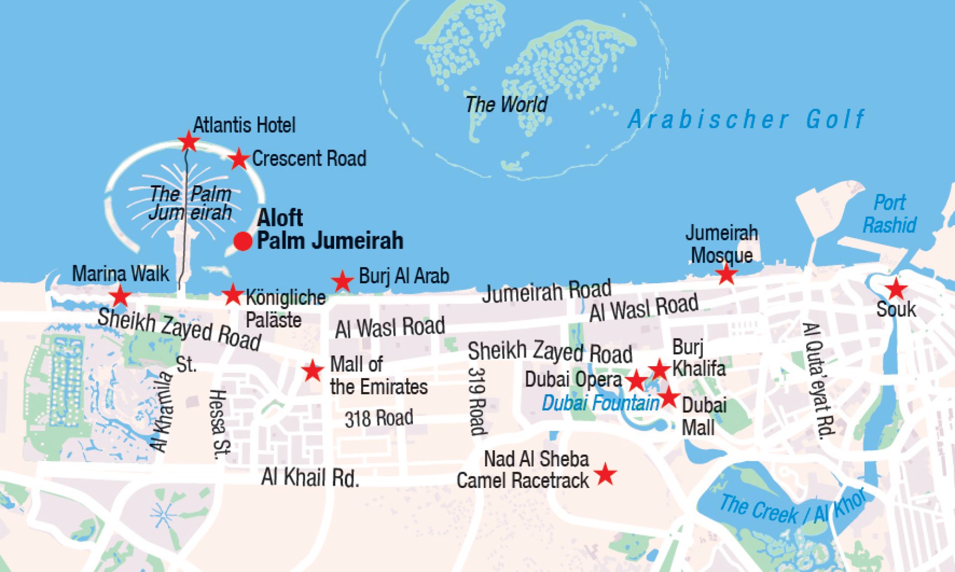 Nach dem Frühstück im Hotel entdecken Sie bei einer geführten Stadtrundfahrt das moderne Dubai: Sie bestaunen architektonische Meisterwerke wie das weltberühmte Burj Khalifa, das höchste Gebäude der Welt - inklusive Besuch der Aussichtsplattform „At the Top“ mit spektakulärem Panorama und atemberaubenden Blick über die Skyline Dubais und den Arabischen Golf - ein Fotostopp am luxuriösen Hotel Burj Al Arab, dem Wahrzeichen in Segelform, darf auf Ihrer Reise nicht fehlen - im Anschluss fahren Sie mit der Monorail über die künstlich angelegte Palmeninsel „The Palm Jumeirah“ - ein beeindruckendes Beispiel für Dubais Innovationsgeist - am Ende der Strecke erwartet Sie ein weiterer Fotostopp am Atlantis The Palm - es geht zurück in Richtung Stadt - Besichtigung der Jumeirah-Moschee, eine der schönsten Moscheen der Emirate - der Nachmittag steht Ihnen zur freien Verfügung - gestalten Sie ihn ganz nach Ihren Wünschen, sei es für Shopping, Entspannung oder individuelle Unternehmungen.