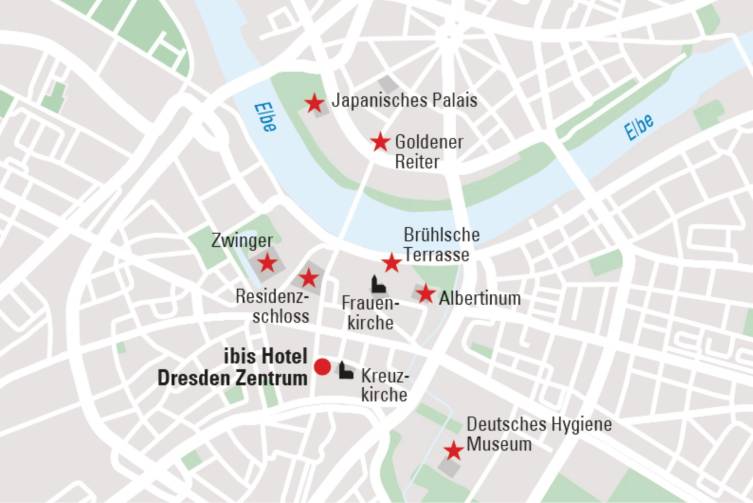 Das ibis Hotel Dresden Zentrum*** befindet sich im Herzen der sächsischen Landeshauptstadt direkt an der populären Einkaufsmeile Prager Straße. Alle Zimmer verfügen über eine komfortable Einrichtung mit Klimaanlage und kostenloses W-Lan. Vom ibis Hotel in der Dresdner Altstadt erreichen Sie die bekanntesten Dresdner Sehenswürdigkeiten bequem zu Fuß: Semperoper, Zwinger, Frauenkirche, Residenzschloss und Altmarkt sind nur wenige Gehminuten entfernt.