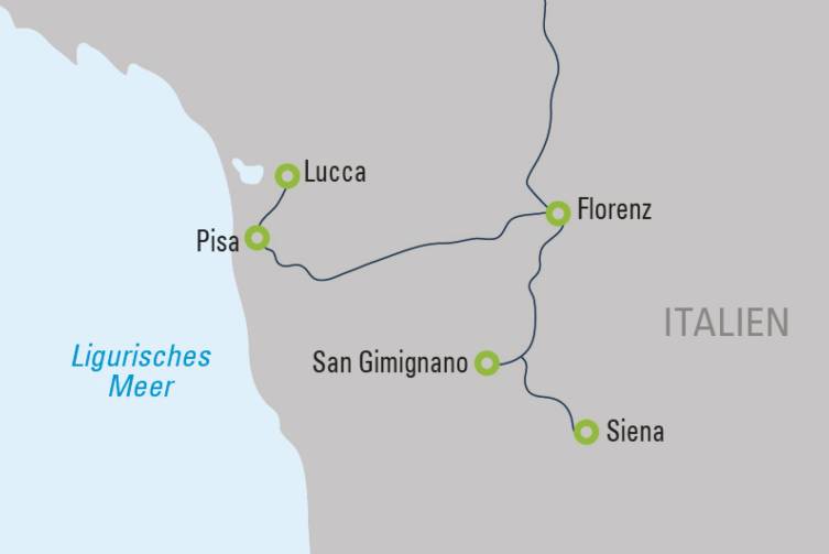 Den heutigen Tag können Sie zur freien Verfügung in Florenz nutzen - fakultativ haben Sie die Möglichkeit, mit Ihrer Reiseleitung einen Ausflug nach Pisa und Lucca zu unternehmen (im Voraus zu buchen: Aufpreis € 19,-) - erkunden Sie in Pisa den „Piazza dei Miracoli“, auf dem sich der Dom, das Baptisterium sowie der berühmte schiefe Turm befinden - das nächste Ziel ist Lucca, die Geburtsstadt Puccinis: auf einer der besterhaltendsten Stadtmauern Europas können Sie den gesamten Stadtkern umrunden.