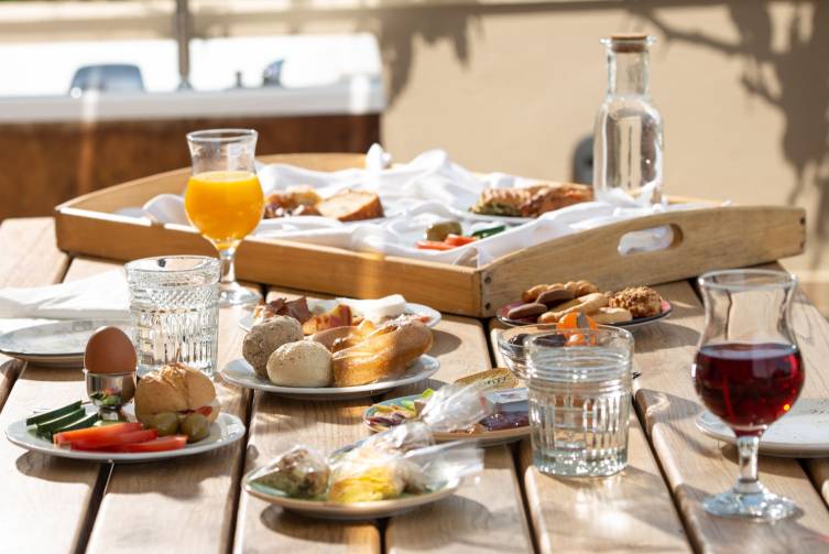 Frühstück, Halbpension: reichhaltiges Frühstücksbuffet; Abendessen à-la-carte als 3-Gang Wahlmenü, (Auswahl an Fleisch, Fisch, vegetarisch); mittags Snacks an der Poolbar oder Mittagessen im à-la-carte Restaurant erhältlich.