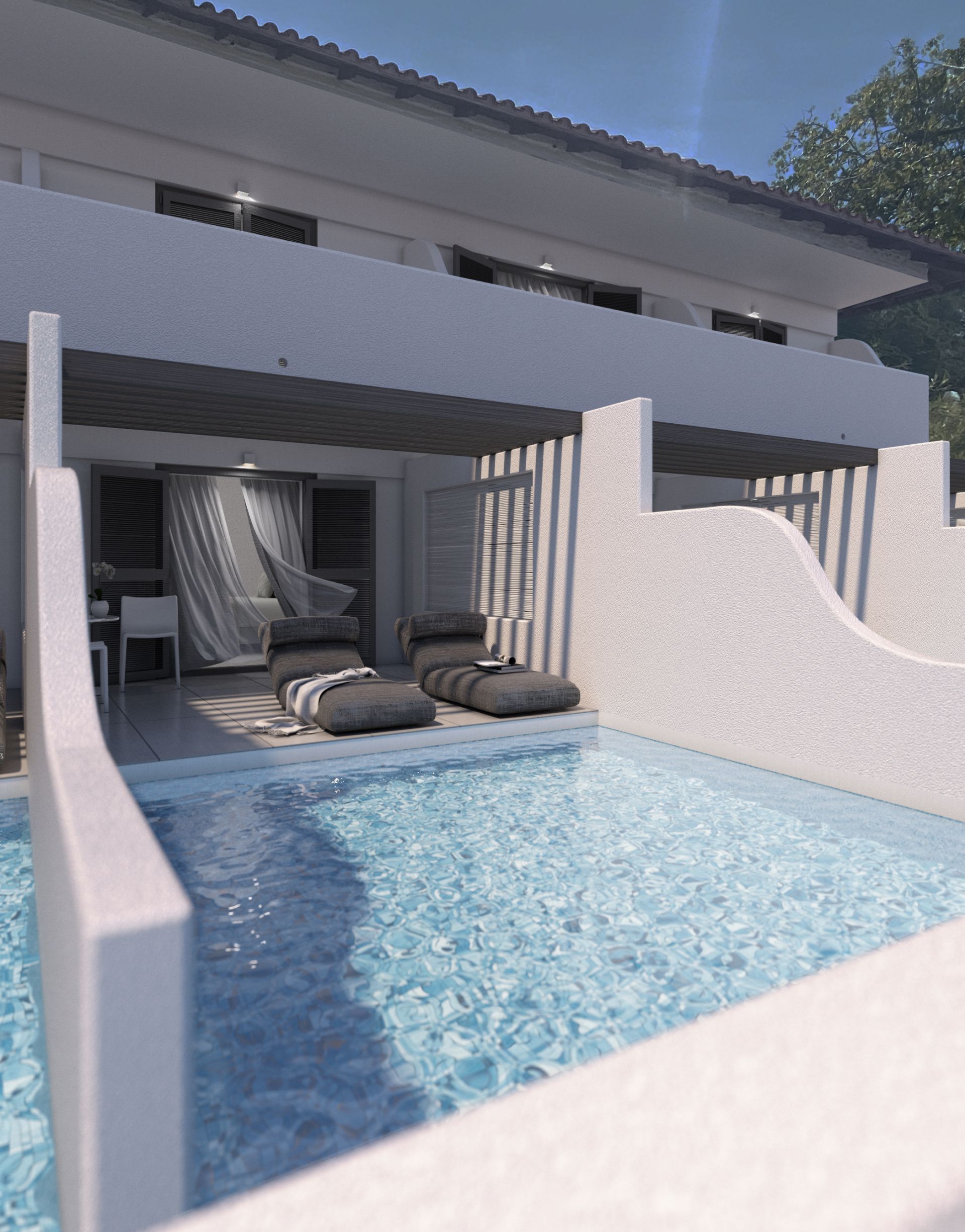 Juniorsuite Privatpool gegen Aufpreis verfügbar, alle im Erdgeschoss, mit Gartenblick, bei Anreise eine Flasche Wein und eine Flasche Wasser im Zimmer;