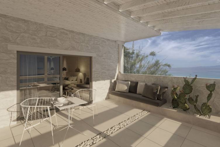 Juniorsuite Superior mit Bad oder Dusche/WC, Bademantel und Slipper, exklusive Pflegeprodukte, Föhn, Klimaanlage, Queen-Size Bett, Sat-TV, Minibar, Safe, Wohnraum (nicht abgetrennt), Kaffee- und Teezubereitungsmöglichkeit, Terrasse mit Meerblick, ca. 30 m²;