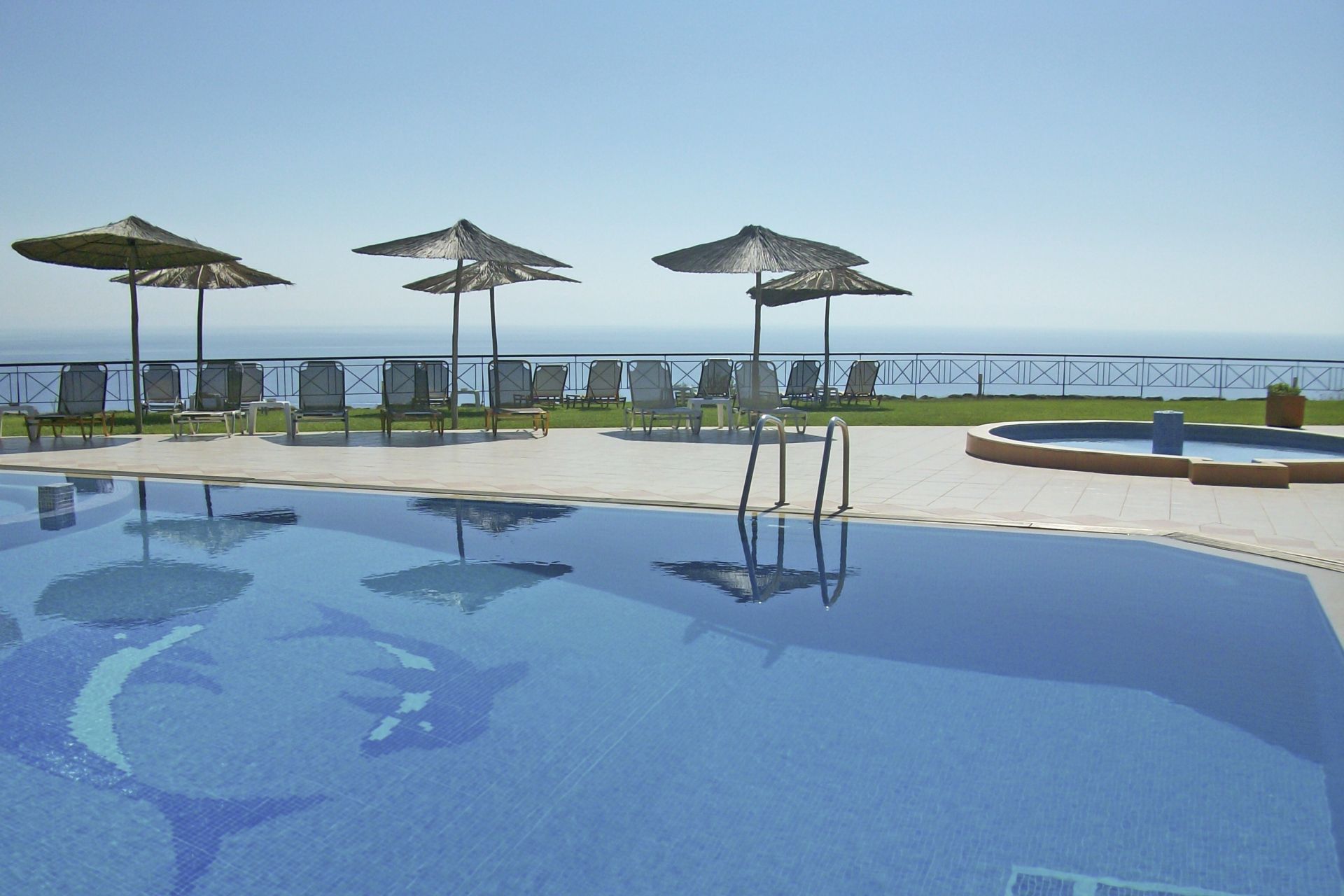 1-stöckig verteilt auf 2 Gebäude, Restaurant, Poolbar mit Snacks tagsüber, Pool mit Jacuzzi, Sonnenterrasse mit ausreichend Liegen und Sonnenschirme (inklusive), Parkplatz und W-Lan kostenlos.