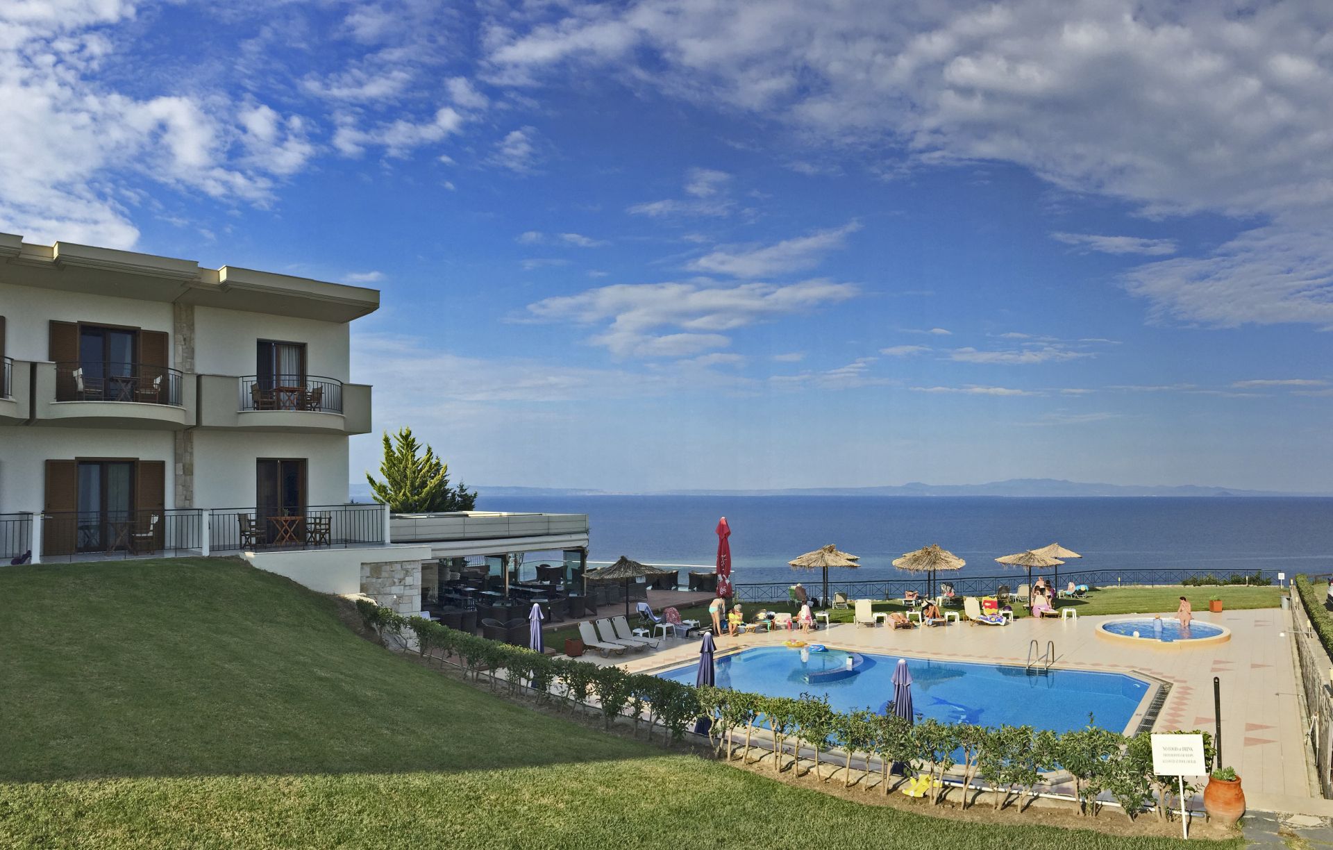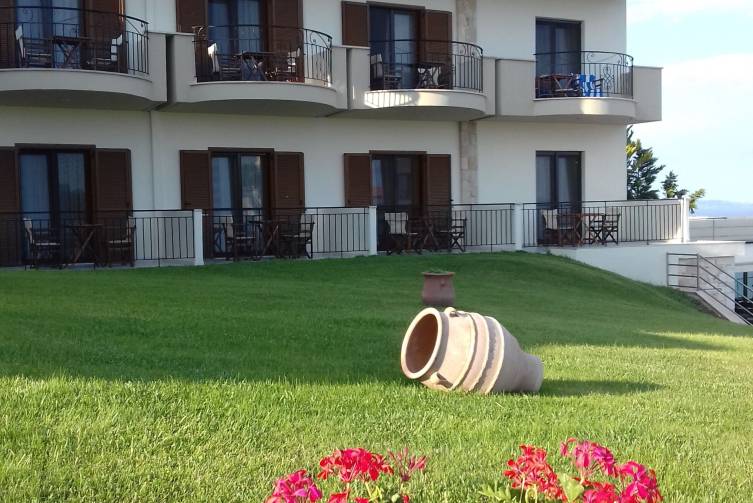 Eine kleine, familiäre Studioanlage mit sehr persönlichem Flair! Der Besitzer George spricht etwas Deutsch und kocht in der Hochsaison am Abend selbst. Mit nur 18 Studios ist es eine der kleinsten Anlagen in Chalkidiki. Vom Pool inmitten des großzügigen Gartens hat man einen wunderbaren Panorama-Meerblick. Kinder sind erst ab 12 Jahren willkommen.