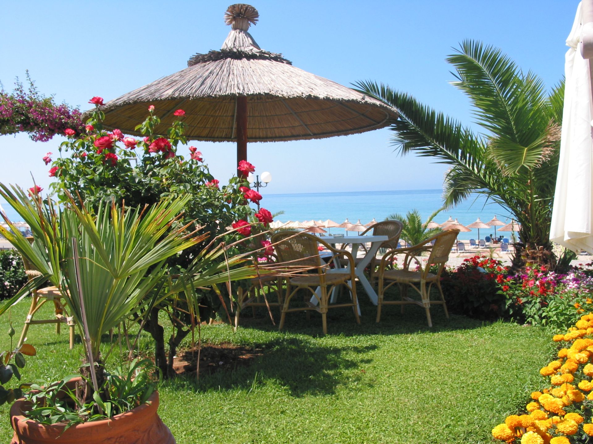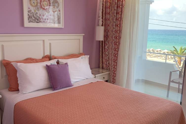 Genießen Sie in der herzlich geführten Anlage direkt am Strand Ihr Frühstück auf einem Balkon mit Blick aufs Meer und entspannen Sie am Pool und im großzügig bepflanzten Garten.