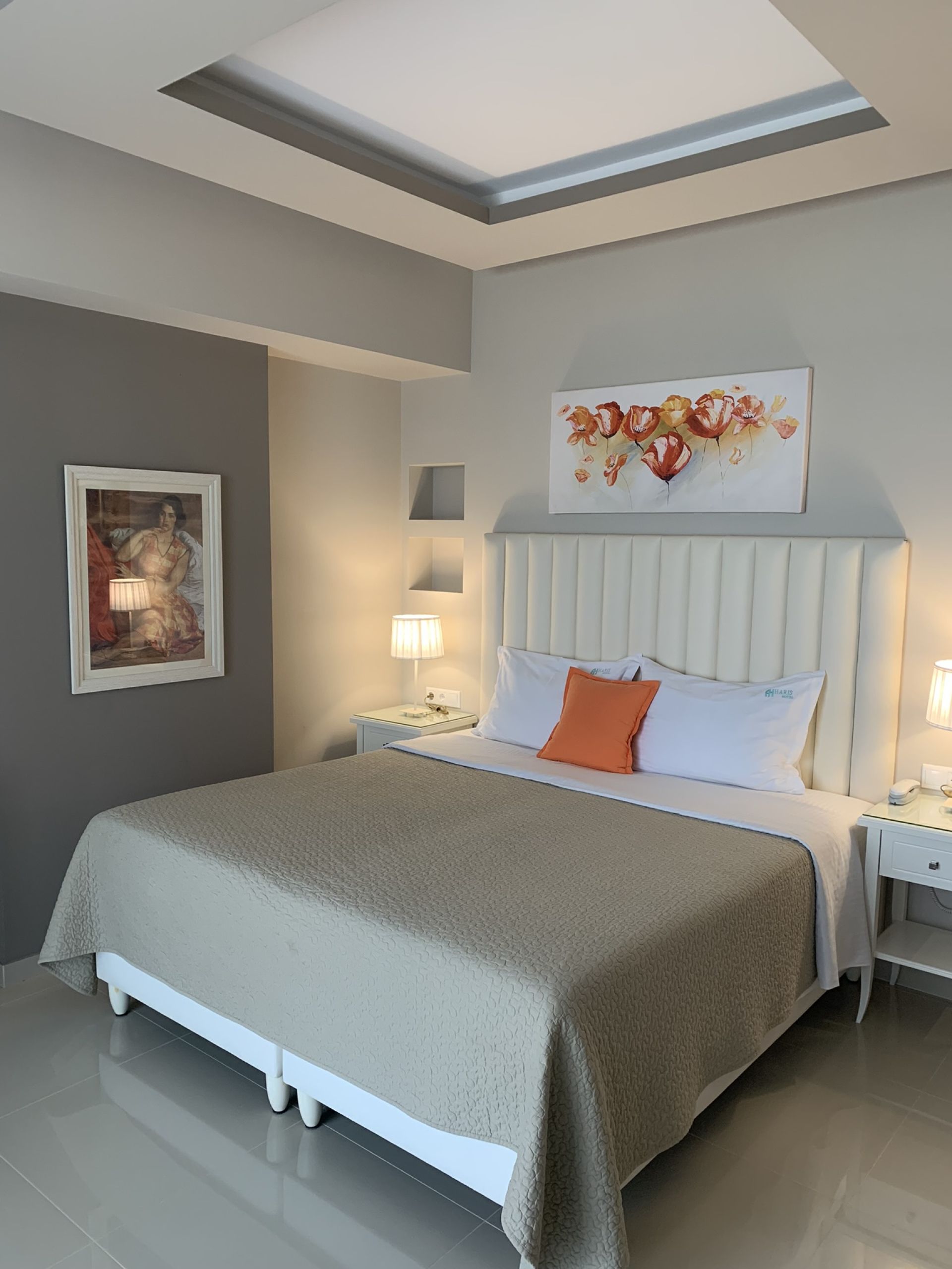 Frühstück: das Frühstück wird aufs Zimmer serviert, à-la-carte Abendessen im 100 m entfernten öffentlichen Restaurant „White Sands“ mit umfangreicher Auswahl möglich; das „White Sands“ gehört, vor allem in der Nebensaison, zu den beliebtesten Restaurants am Vrachos Beach mit guter Speisenauswahl und moderaten Preisen.