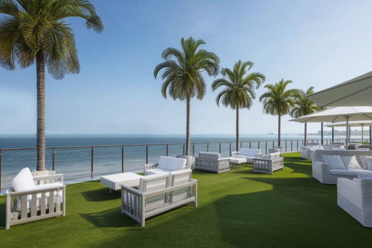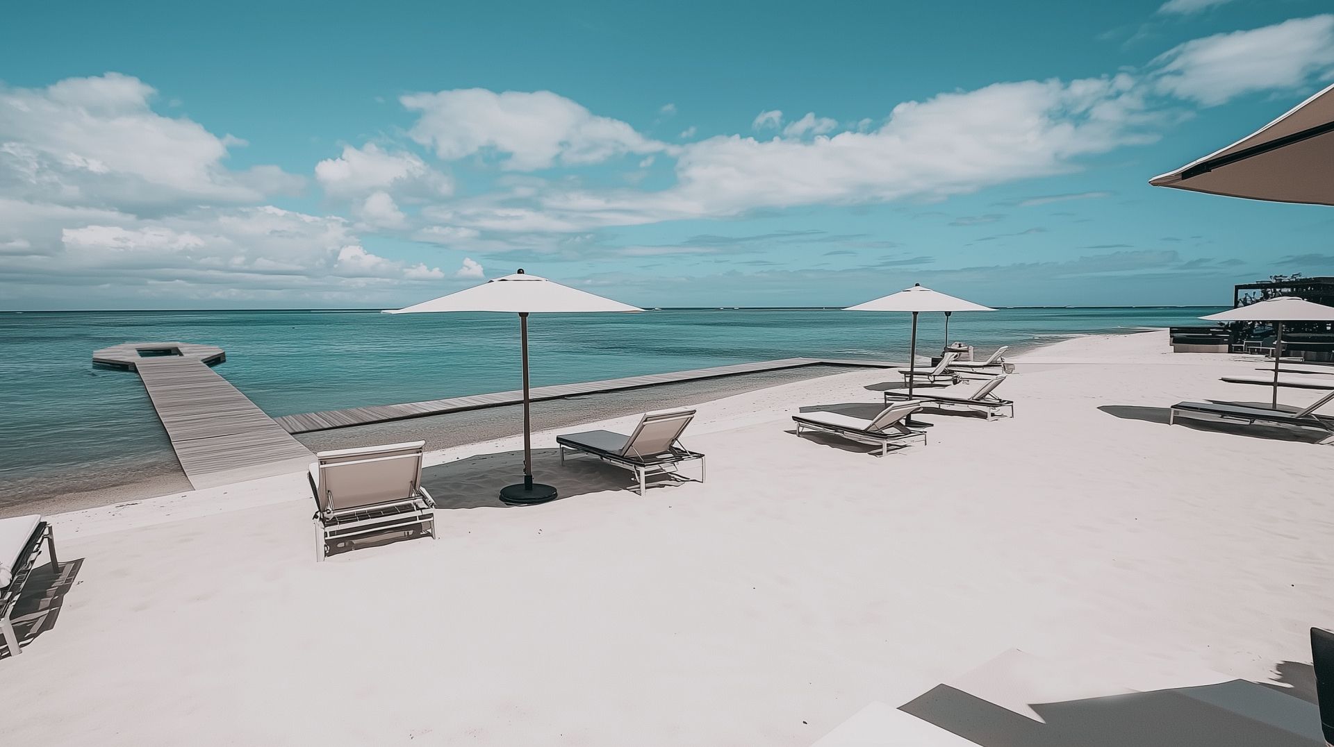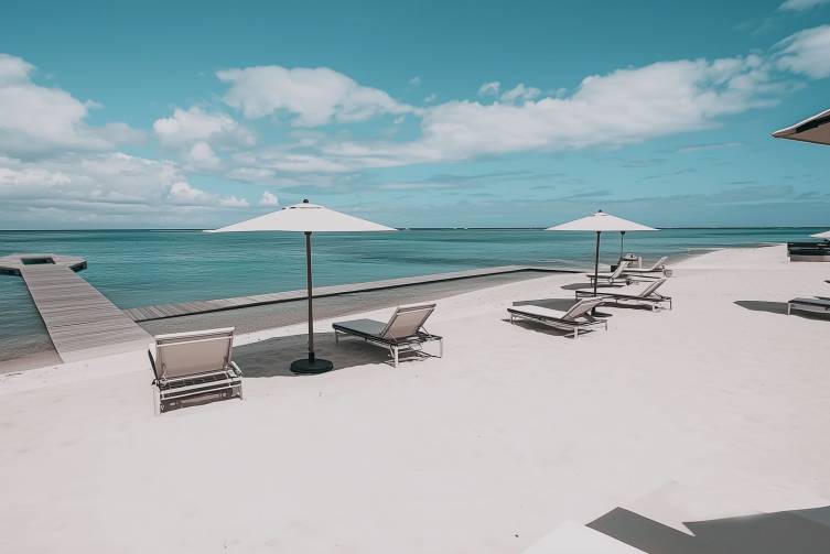 200 m vom Strand entfernt, mit ständigem Golfcart-Shuttle (08:00 - 20:00 Uhr) oder auch zu Fuß leicht erreichbar, sandig in den beiden Liegebereichen, Liegen und Sonnenschirme ab der 4. Reihe inklusive (1.-3. Reihe gegen Gebühr), Strandtücher gegen Deposit bzw. € 6,-/Austausch, Strandbar von 8:30-19:00 Uhr geöffnet.
