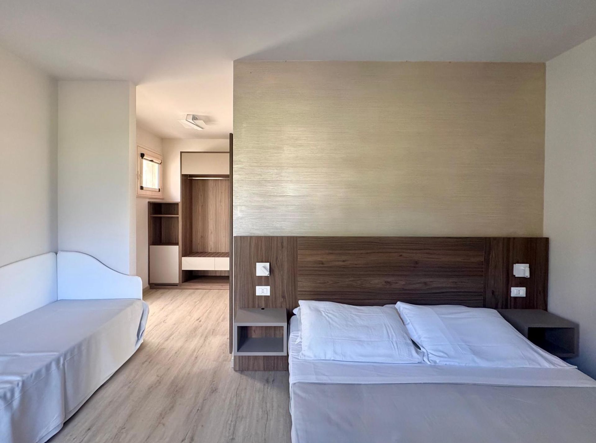 Doppelzimmer Comfort renoviert, geräumiger als Doppelzimmer und mit zusätzlichem Schlafsofa (oder Stockbett), Balkon oder Terrasse, Gartenblick, ca. 22 m²;