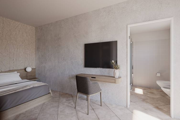 Doppelzimmer mit Bad oder Dusche/WC, Föhn, Safe, Klimaanlage, Minibar (gegen Gebühr), Sat-TV, Balkon oder Terrasse mit Gartenblick, ca. 15 m²;