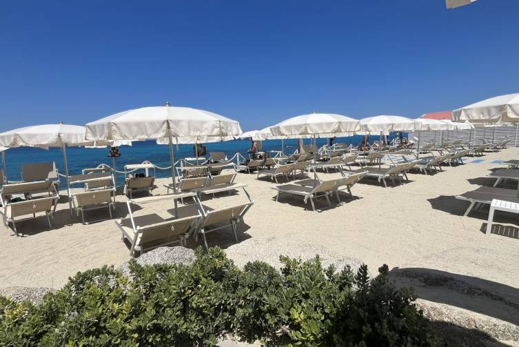 Strand: 300m vom Strand Spiaggia del Tono, grobsandig, Shuttle-Service vom Hotel zum Strand, Strandservice inklusive, Strandtücher inklusive.