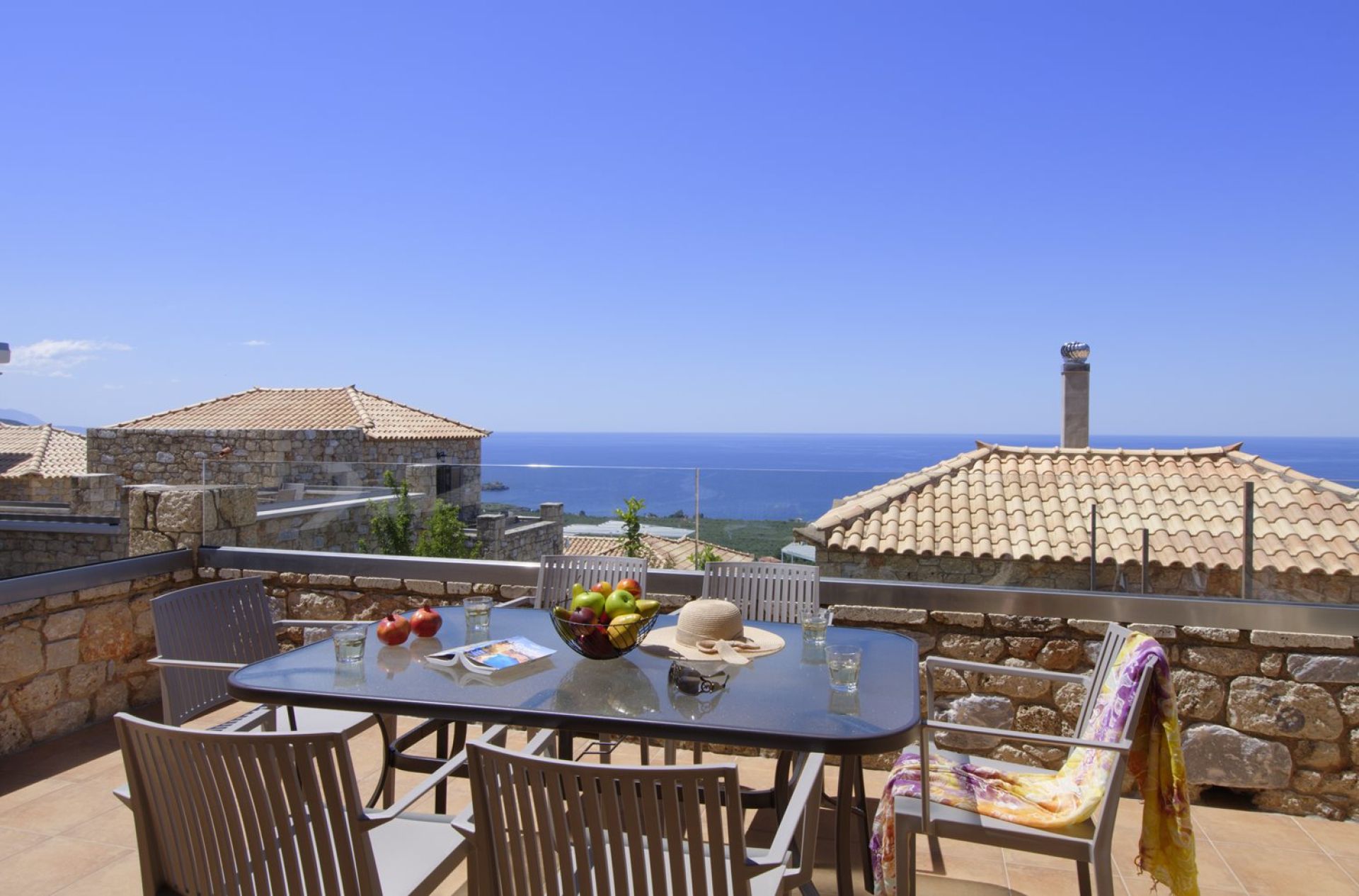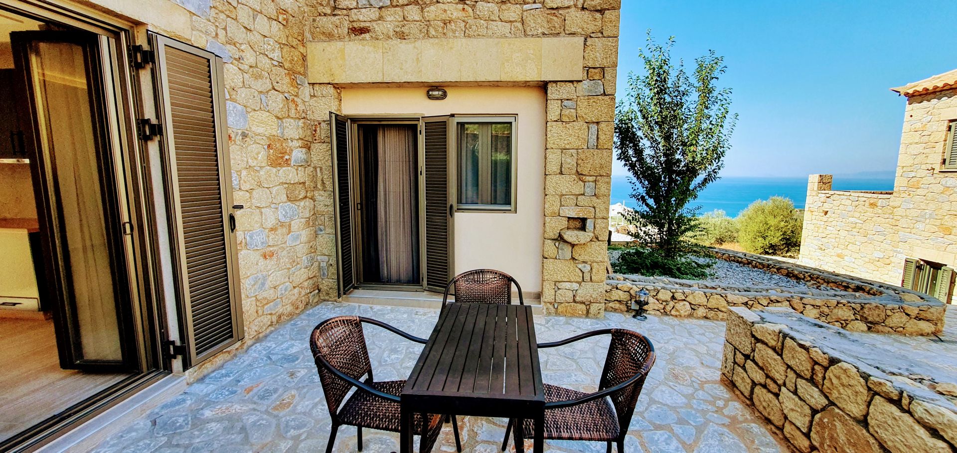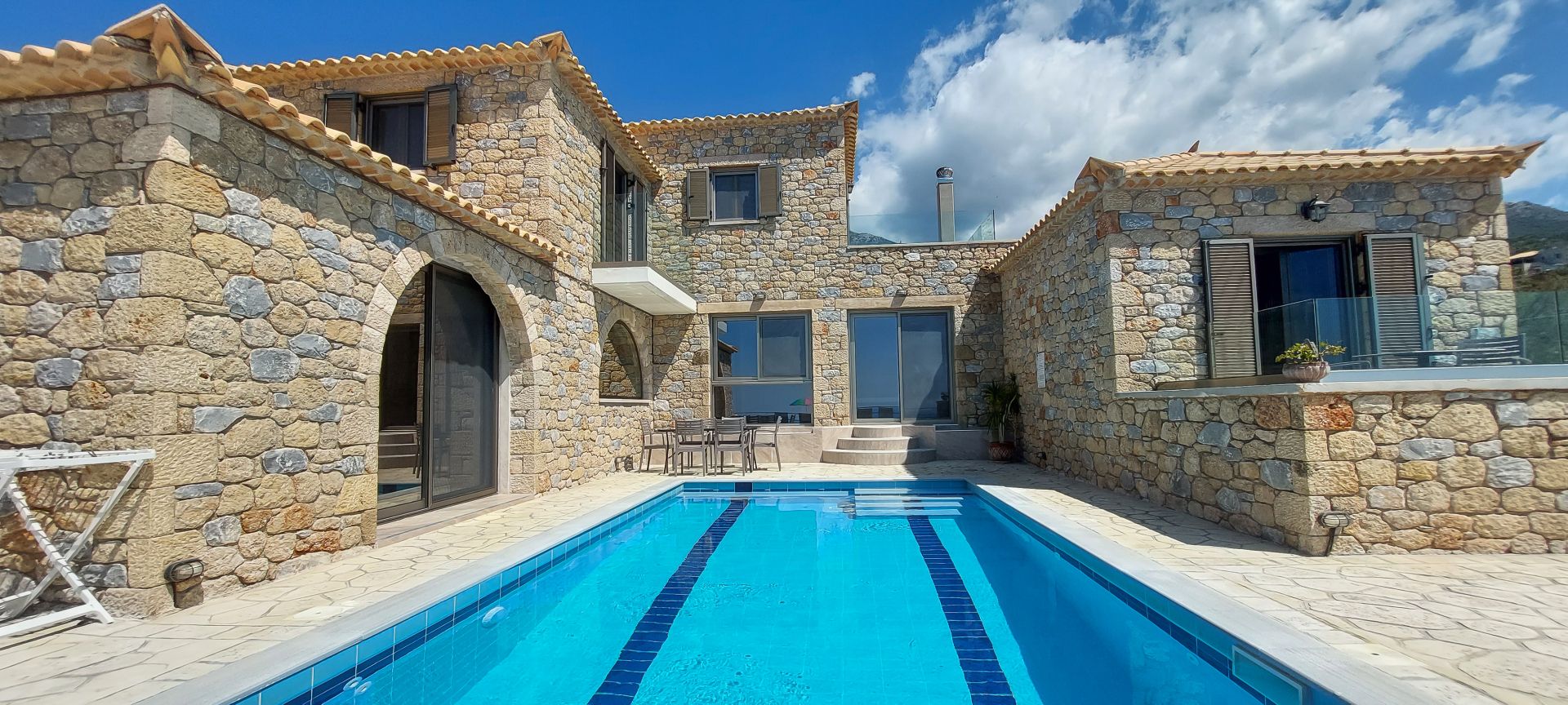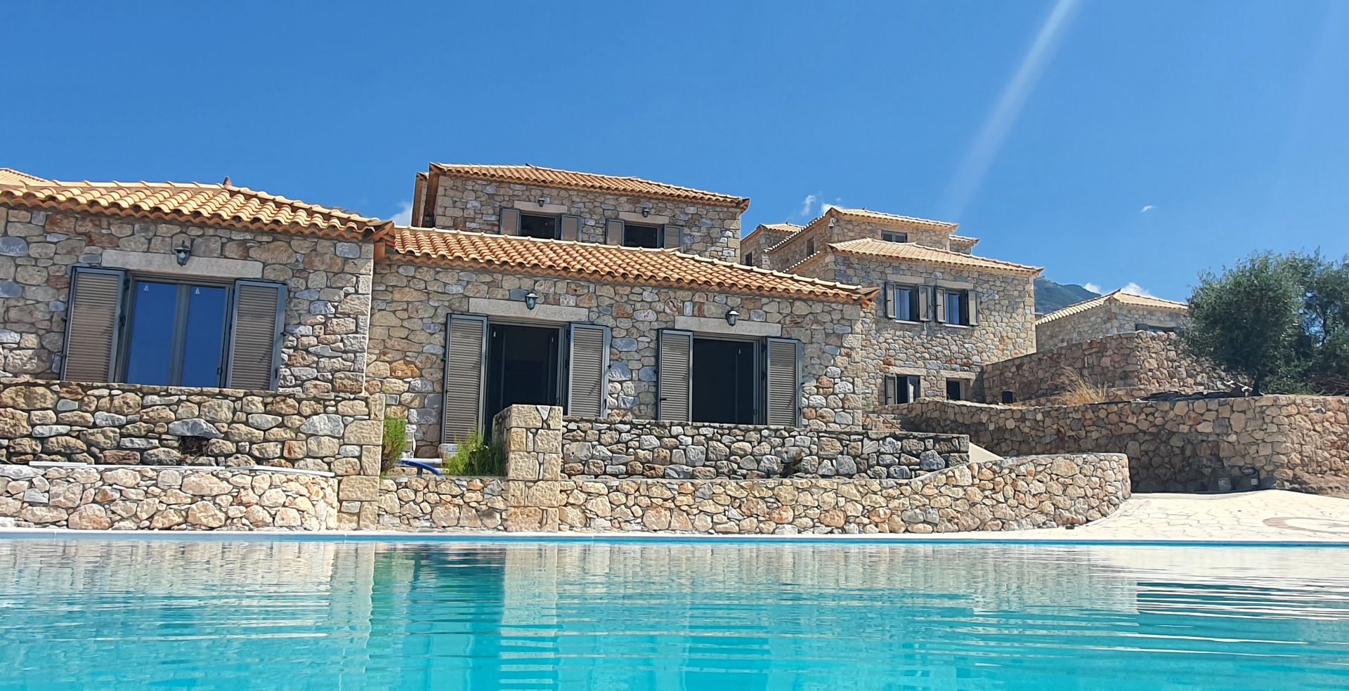 2021 erbaut, 9 Gebäude, alle im landestypischen Stil der Mani aus Naturstein, Rezeption, Infinity-Pool, Liegen und Sonnenschirme inklusive, Poolhandtücher vorhanden (Wechsel 1x pro Woche), Poolbar, Parkplatz und W-Lan kostenlos.