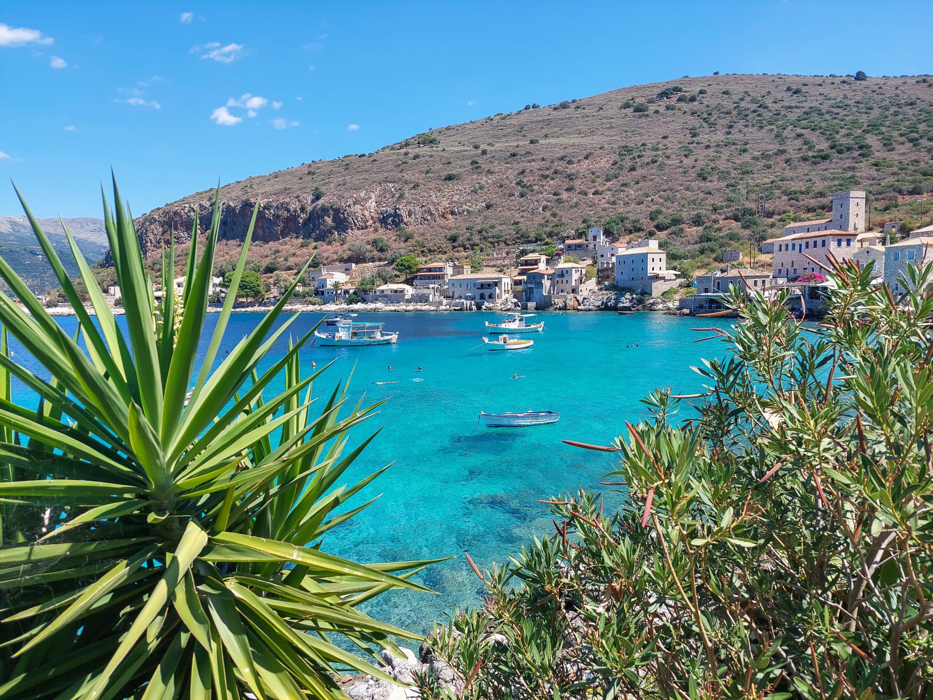 Der Ort Limeni empfiehlt sich für einen Tagesausflug. Limeni ist ein bezauberndes Dorf mit urigen Tavernen am Meer. Mit etwas Glück kann man sogar Meeresschildkröten an der Bucht beobachten, während man auf der Terrasse ein Glas Wein aus der Region genießt.