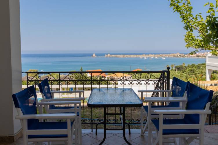 Ca. 2km von Methoni entfernt, dort findet man viele Tavernen, Cafés, Bars und Einkaufsmöglichkeiten, Transfer Flughafen – Hotel ca. 70 min. im inkludierten Mietauto.