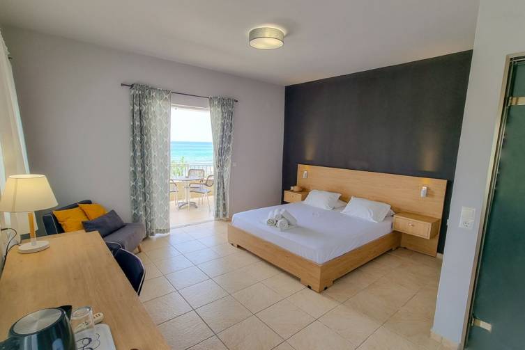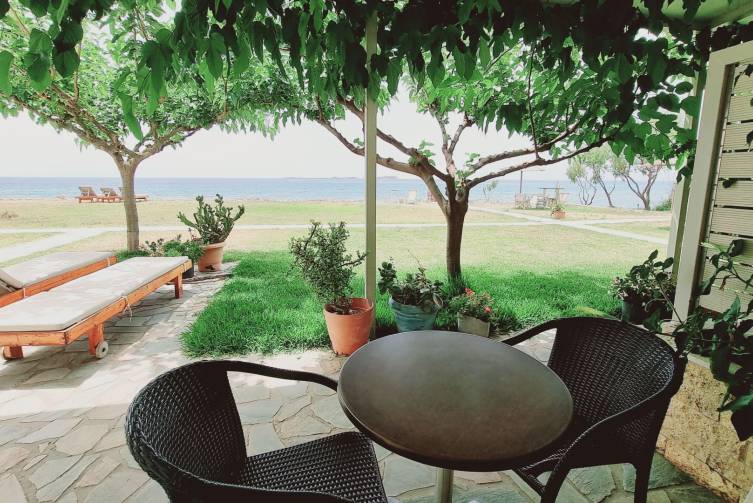 Eine Oase der Ruhe! Direkt am Meer mit fantastischem Panoramablick. Der feinsandige, flach abfallende Xi-Beach grenzt an den Garten des Hotels. Entspannen Sie bei Musik an der Beachbar mit einem vom Chef frisch zubereiteten Cocktail und lassen Sie sich von der Küche mit ausgezeichnetem, fangfrischem Fisch begeistern.