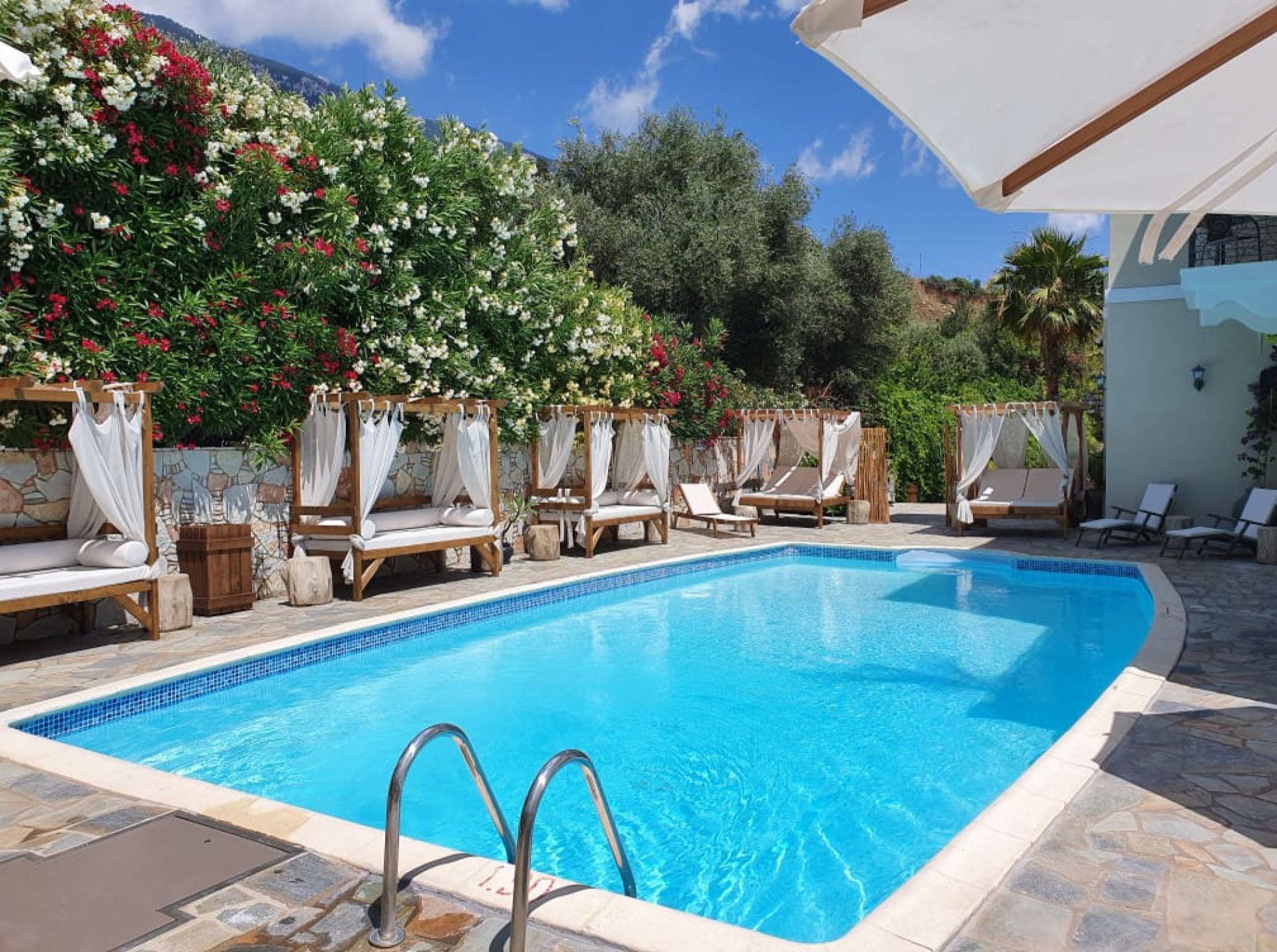 Hotel: Boutiquehotel mit hochwertiger Ausstattung, 16-h Rezeption, Restaurant, Pool, Snackbar, Lounge, Liegen und Sonnenschirme inklusive, WLAN und Parkplatz kostenlos.