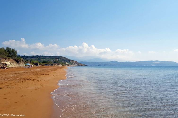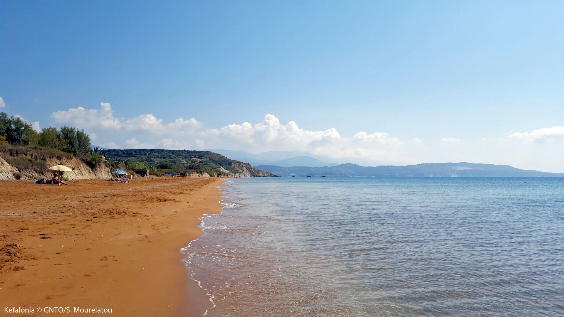 ca. 250 m zum langen, feinsandigen roten Xi-Strand; flach abfallend, gut für Kinder zum Sandburgenbauen geeignet; Liegen und Sonnenschirme gegen Gebühr, ca. € 8,-/Set/Tag (vor Ort); von Juni-September Kiosk am Strand und Wassersportangebot, z.B. Jet-Ski, Parasailing und Surfen; im Mietauto lassen sich die Traumstrände im Westen erkunden wie Petani, Vouti oder Myrtos Beach.