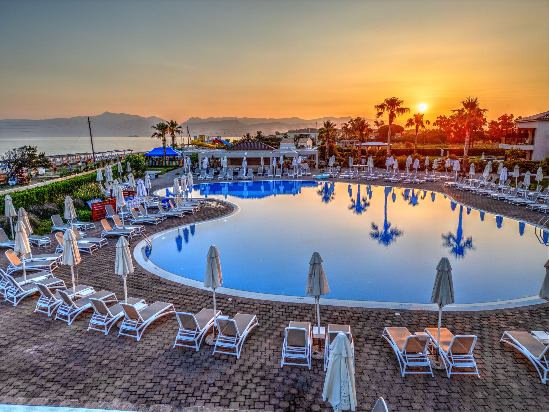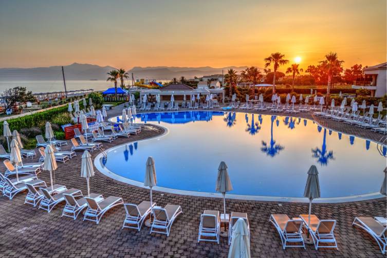 2019 erbaut, Hauptgebäude mit 24-h Rezeption, Lobbybar und Buffetrestaurant; 12 Nebengebäude; à-la-carte Restaurant „Ambrosia“; Babysitterservice (gegen Gebühr), Bibliothek, Internetecke, Minimarkt, 600 m² Süßwasserpool, Kinderbecken, Poolbar, Liegen und Sonnenschirme kostenlos; W-Lan und Parkplatz kostenlos.
