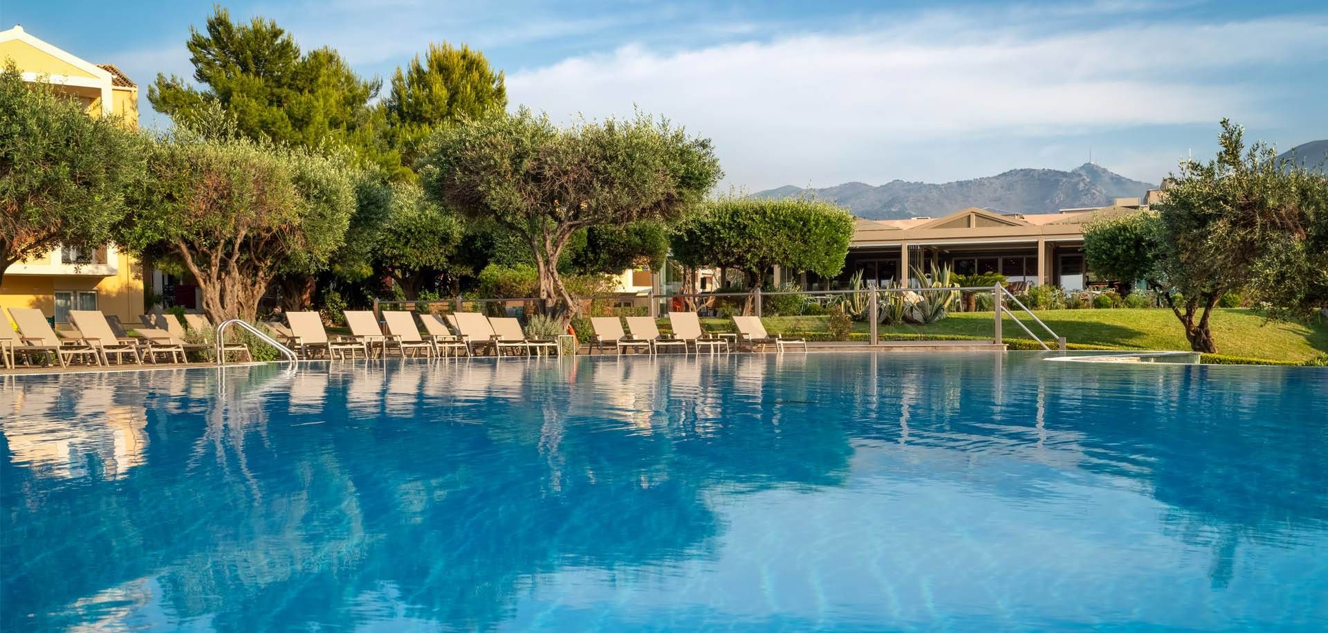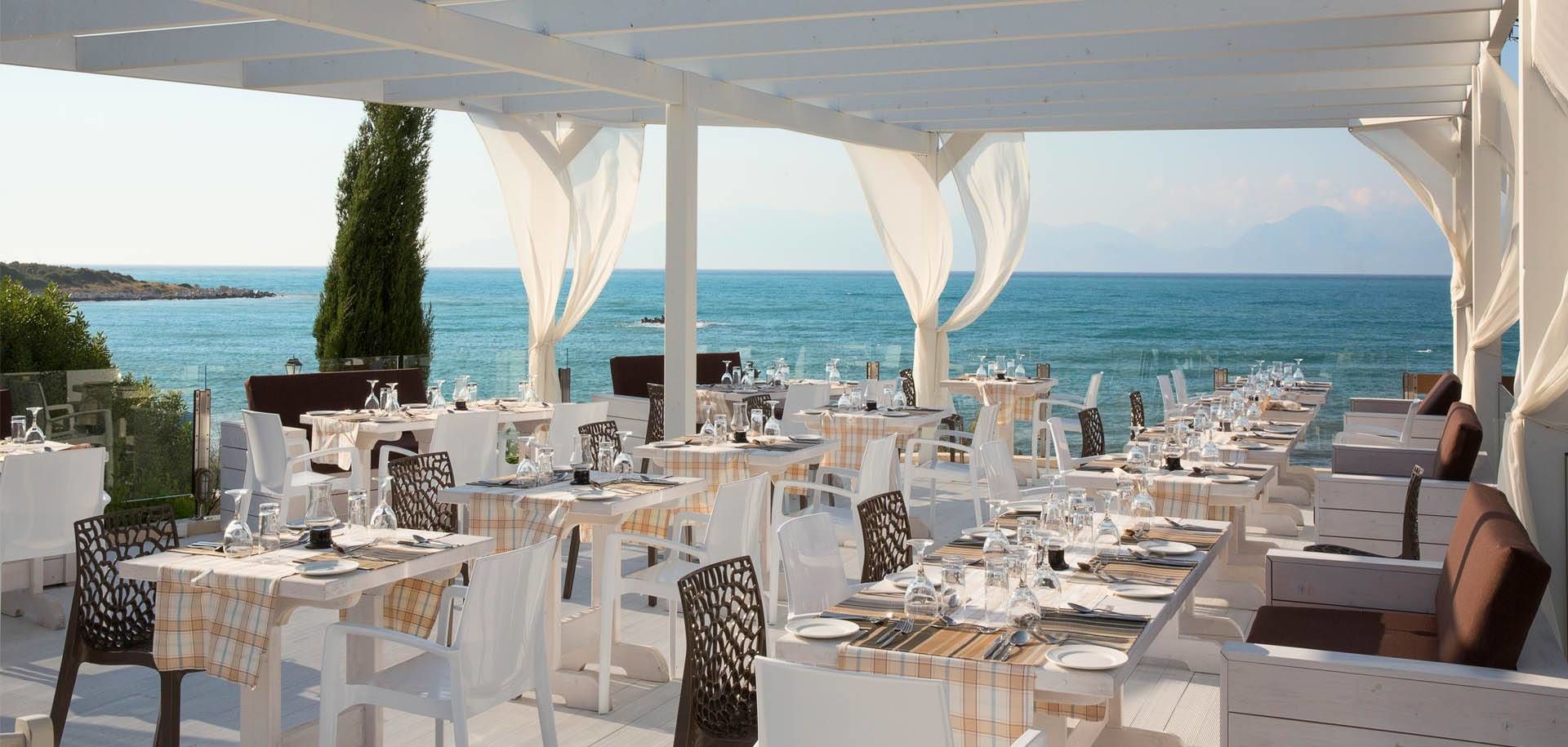Verpflegung: All Inclusive: Hauptbuffetrestaurant für Frühstück Mittags und Abendessen mit griechischer und internationaler Küche, Themenabende 3x pro Woche (griechisch, italienisch und oriental-asiatisch) mehrere Showcookingstationen, Kinderbuffet; Pool Food Court: mittags Snacks wie Pizza, Hot Dogs, Pommes usw. 2 a-la-carte Restaurants (Reservierung erforderlich) je 1x im All Inclusive Paket inkludiert, Poolbar mit lokalen Spirituosen, Cocktails, Bier, Wein, Säfte, Kaffee und Tee inkludiert. Gegen Gebühr: Late check Out, Internationale Markenspirituosen, Flaschenwein, Barista Cafe, Minimarkt, Crepestation und Lunchpakete. Im Speisesaal lange Hosen für Männer erwünscht, Spezielle Speisen für Vegetarier und Glutenfrei erhältlich, All Inclusivepaket gültig täglich von 7:00-23:00 Uhr.