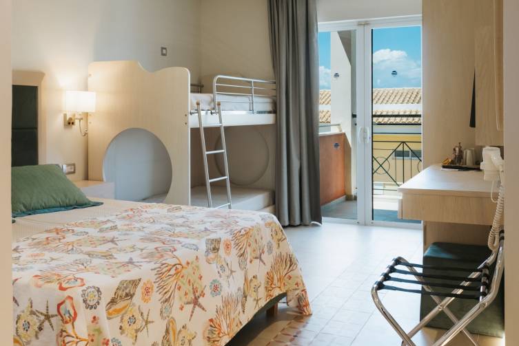 Vierbettzimmer: für bis zu 2 Erwachsenen mit 2 Kinder, Doppelbett und Stockbett im Zimmer, ansonsten gleich ausgestattet wie Doppelzimmer mit Gartenblick, ca. 30m²;