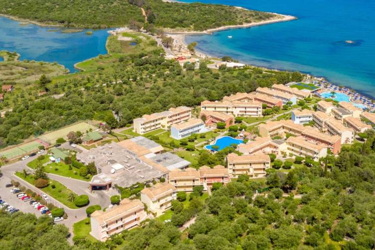 Lage: ruhig im Nordwesten von Korfu, zwischen Kassiopi und Acharavi, 4km nach Acharavi, 200m in die Ortschaft Agios Spyridon, Shuttlebus für Hotelgäste (gegen Gebühr, ca 7€ pP nach Acharavi oder Kassiopi, ca. 15€ pP nach Korfu Stadt, Reservierung erforderlich)