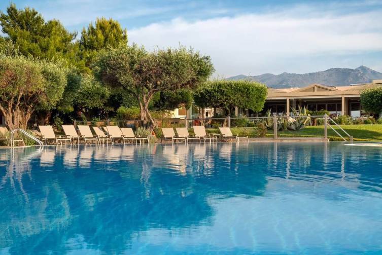 Verpflegung: All Inclusive: Hauptbuffetrestaurant für Frühstück Mittags und Abendessen mit griechischer und internationaler Küche, Themenabende 3x pro Woche (griechisch, italienisch und oriental-asiatisch) mehrere Showcookingstationen, Kinderbuffet; Pool Food Court: mittags Snacks wie Pizza, Hot Dogs, Pommes usw. 2 a-la-carte Restaurants (Reservierung erforderlich) je 1x im All Inclusive Paket inkludiert, Poolbar mit lokalen Spirituosen, Cocktails, Bier, Wein, Säfte, Kaffee und Tee inkludiert. Gegen Gebühr: Late check Out, Internationale Markenspirituosen, Flaschenwein, Barista Cafe, Minimarkt, Crepestation und Lunchpakete. Im Speisesaal lange Hosen für Männer erwünscht, Spezielle Speisen für Vegetarier und Glutenfrei erhältlich, All Inclusivepaket gültig täglich von 7:00-23:00 Uhr.