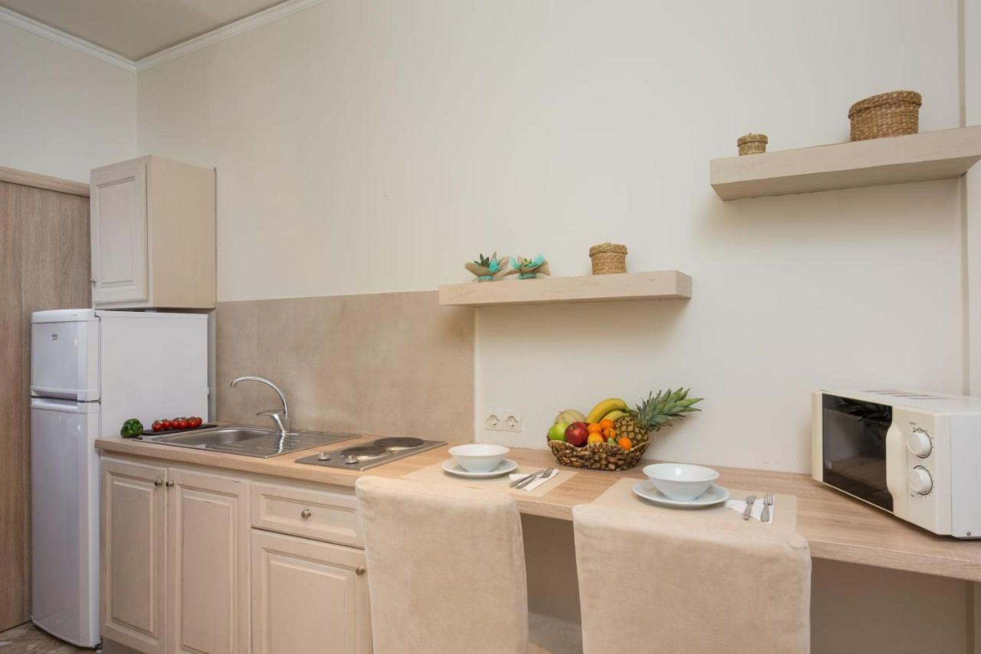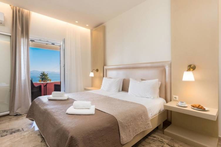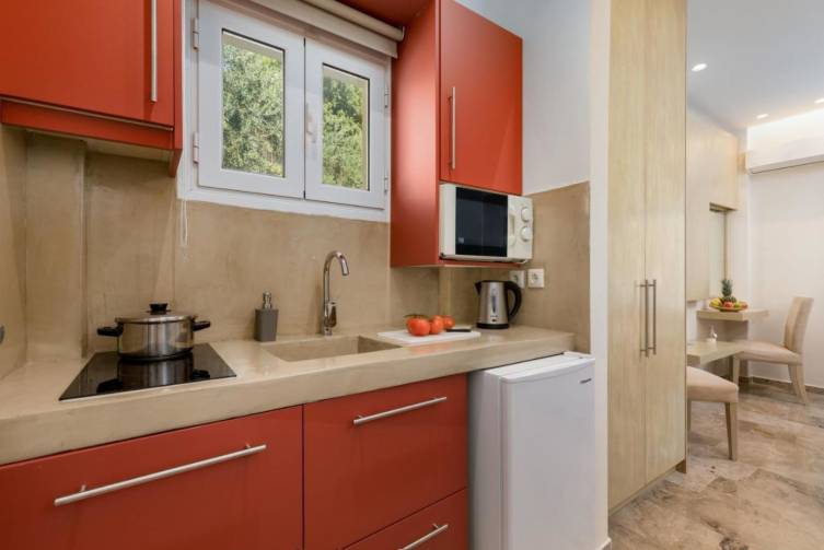 Studio mit Bad oder Dusche/WC, Föhn, Klimaanlage, Sat-TV, Safe, voll ausgestattete Kitchenette, Mikrowelle, Kaffee- und Teezubereitungsmöglichkeit, Mini-Kühlschrank, kleiner Sitzbereich, Balkon oder Terrasse, Meerblick, ca. 20 m²;
