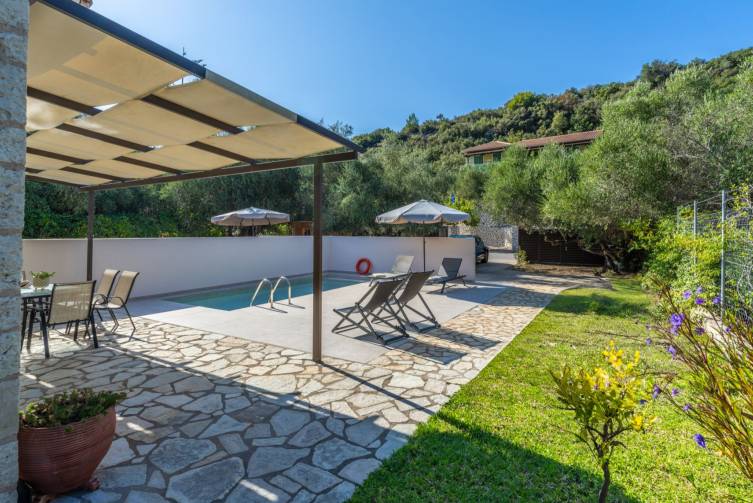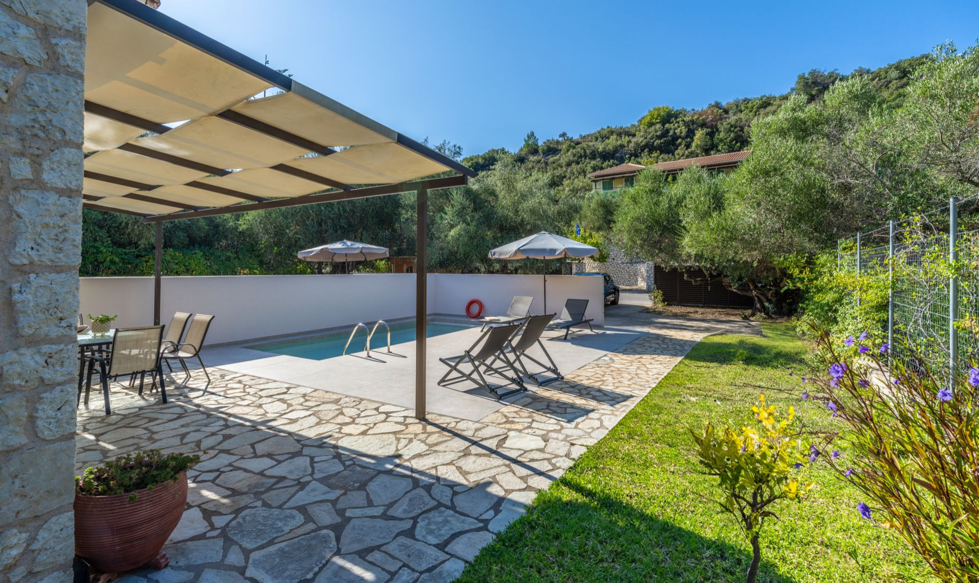 ca. 3 Autominuten zum malerischen Örtchen Agios Nikitas mit charmanter Fußgängerzone, die sich hervorragend zum Bummeln am Abend eignet. Transfer Flughafen - Villa ca. 45 min im inkludierten Mietauto.