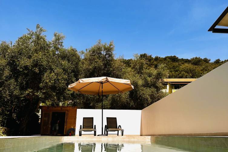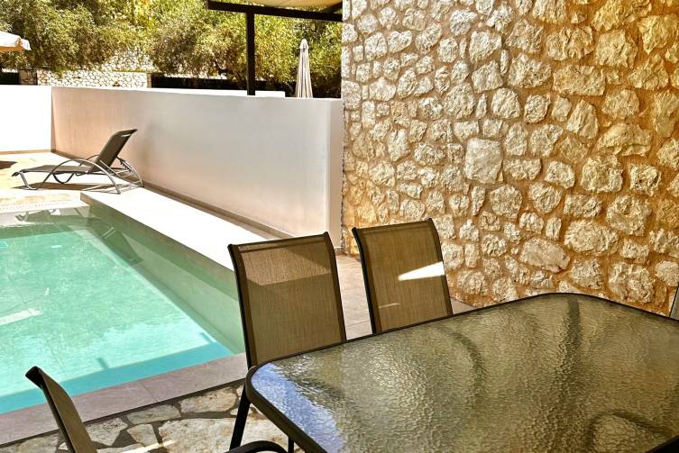 2023 erbaute Villen, in massiver Steinbauweise und umgeben von schattenspendenden Olivenbäumen, 1 Gebäude aber 1 Villa weiter nach hinten versetzt, Gartentor und Zaun rund um das Grundstück, wodurch maximale Privatsphäre und Sicherheit garantiert wird, W-Lan und Parkplätze kostenlos in der Unterkunft verfügbar.