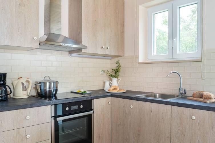 Selbstversorger: vollausgestattete Küche in der Unterkunft, Tavernen und Einkaufsmöglichkeiten in Agios Nikitas sowie am Kathisma Beach.