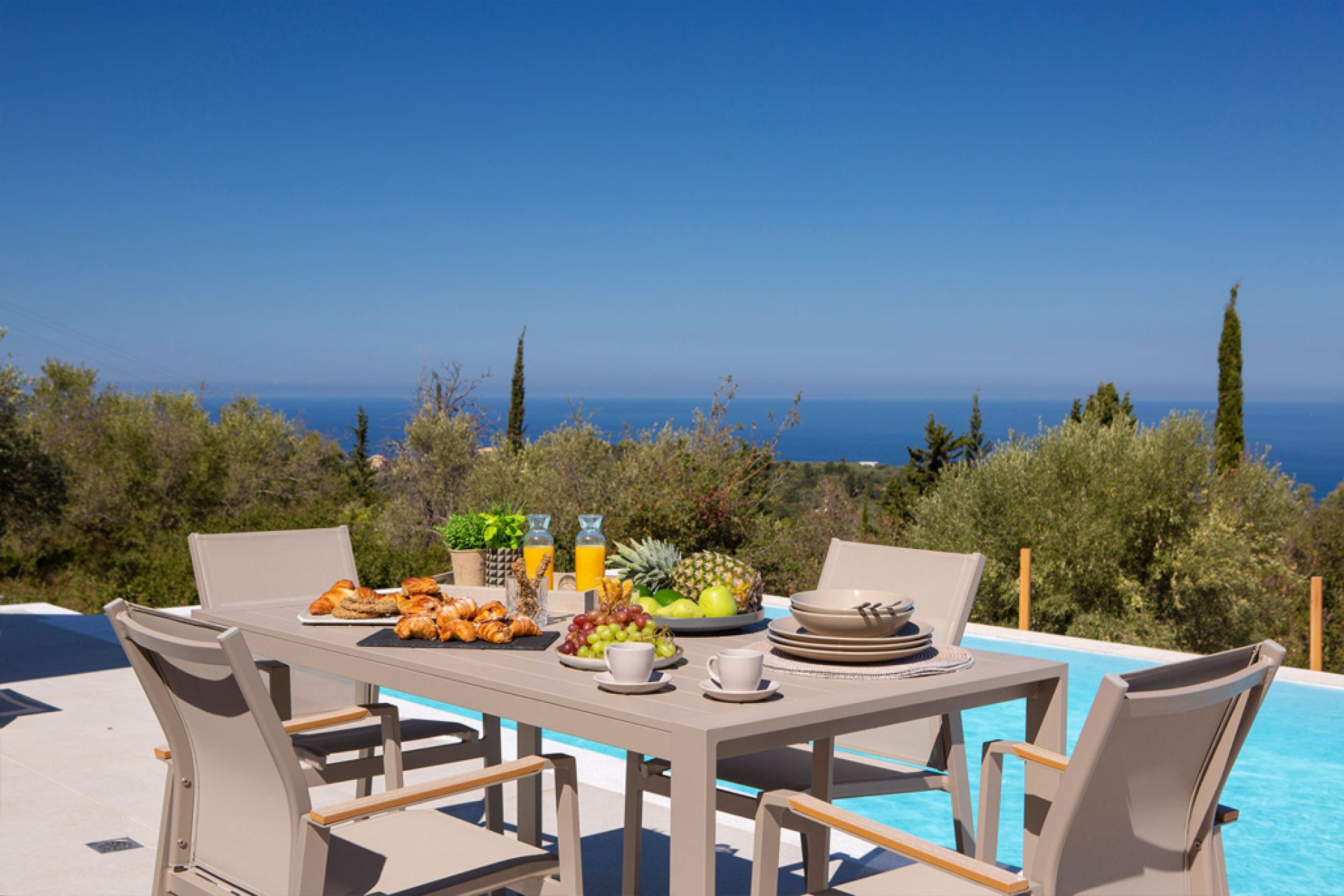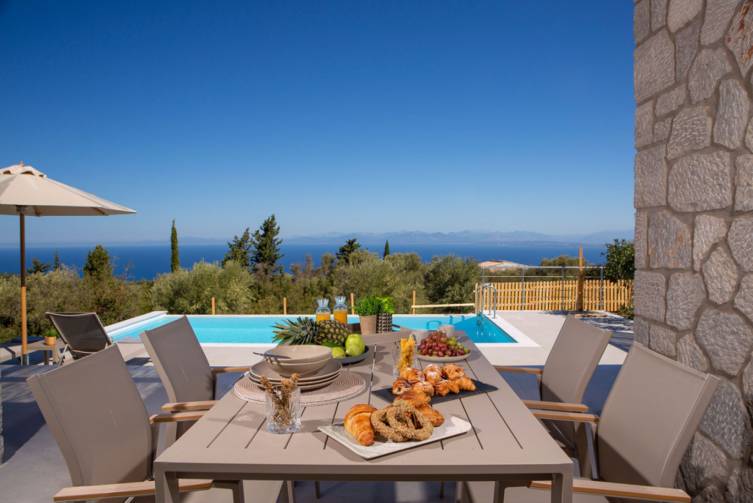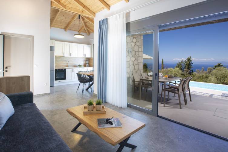Die modernen Ionian Harmony Villas verbinden Komfort, Eleganz und eine spektakuläre Aussicht über das Ionische Meer. Gäste genießen private Pools, helle Wohnräume und die entspannte Atmosphäre einer der schönsten Inseln Griechenlands.