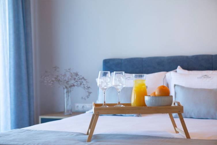 ca. 3,2 km zum Sand-/Kiesstrand von Skala Gialou (9 Autominuten) oder 3,5km zum Pefkoulia Beach (ca. 6 Autominuten); die weißen traumhaften Kiesstrände von Lefkas liegen einige Kilometer entfernt, sind aber mit dem inkludierten Mietauto einfach zu erreichen; zum Kathisma Beach (ca. 10 km) oder Porto Katsiki (ca. 40 km).