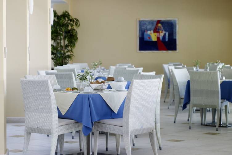 Frühstück, Halbpension: Frühstück und Abendessen werden jeweils in Buffetform angeboten; im Hauptrestaurant „Asterias“ abends gelegentlich Live-Musik und kulinarische Themenabende; Vital-Ecke mit veganen, laktose- und glutenfreien Speisen; italienisches Restaurant „Bistro“ und griechisches à-la-carte Restaurant „Nautilos“ (beide gegen Vorreservierung); Zimmerservice gegen Aufpreis verfügbar.