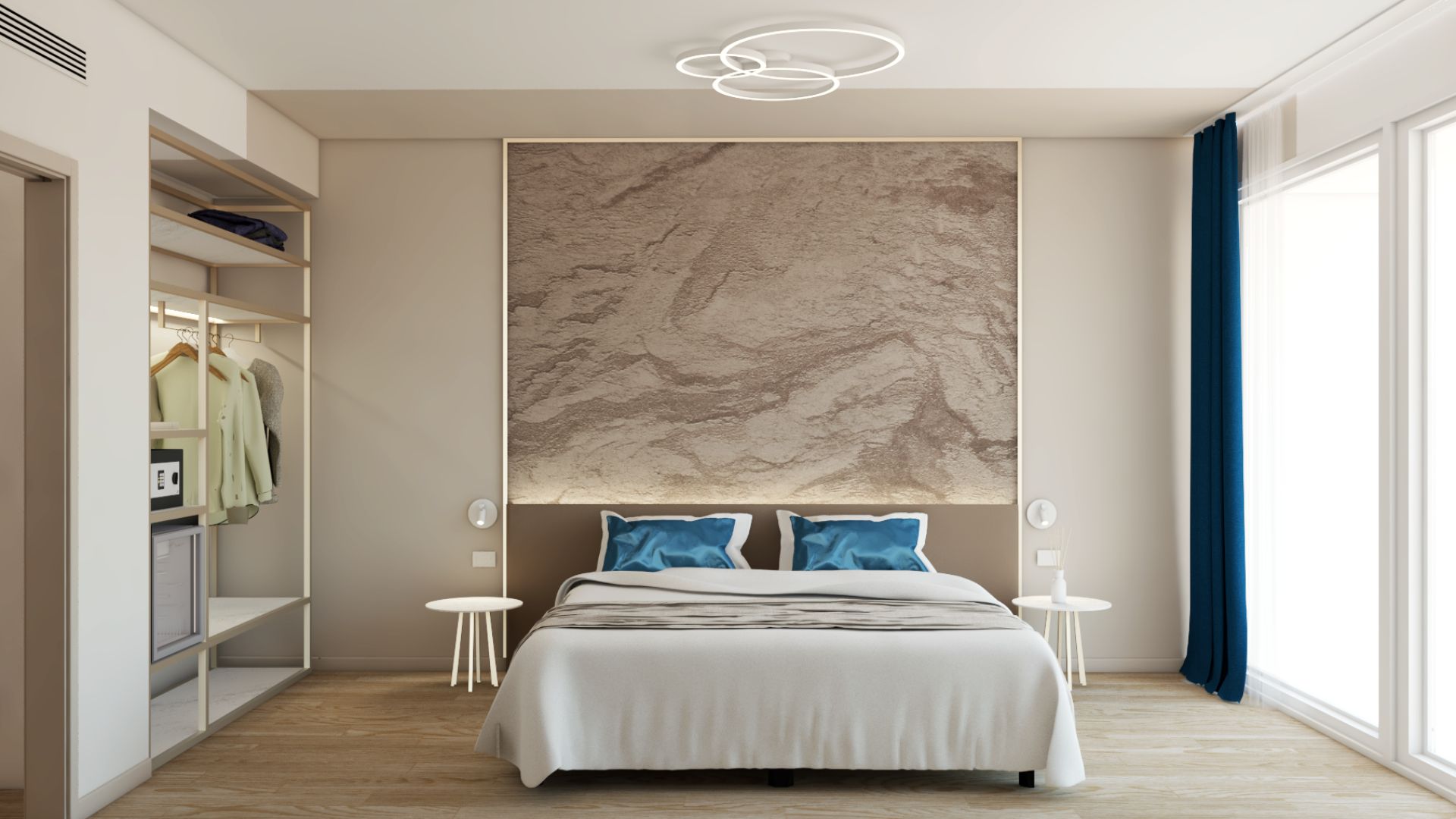 Doppelzimmer Savoia Südseite renoviert mit Dusche, Föhn, Terrasse oder französischem Balkon, im 5. oder 6. Stock, Parkettboden;