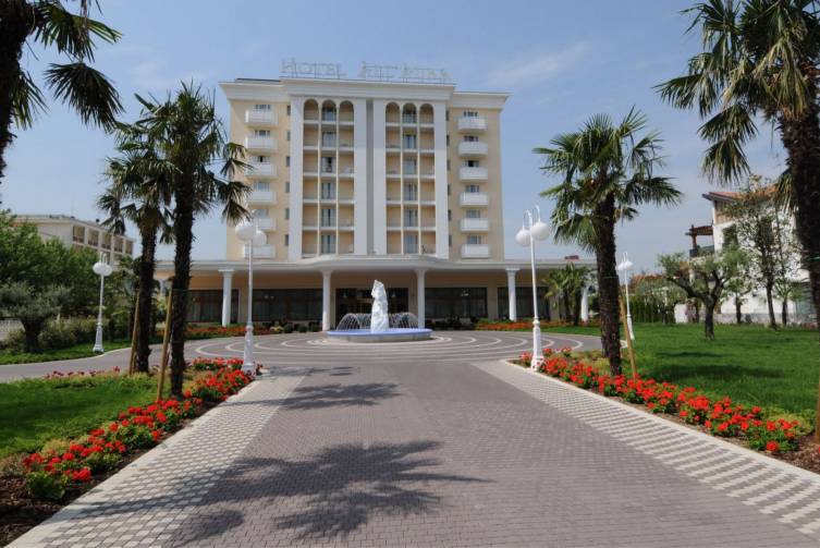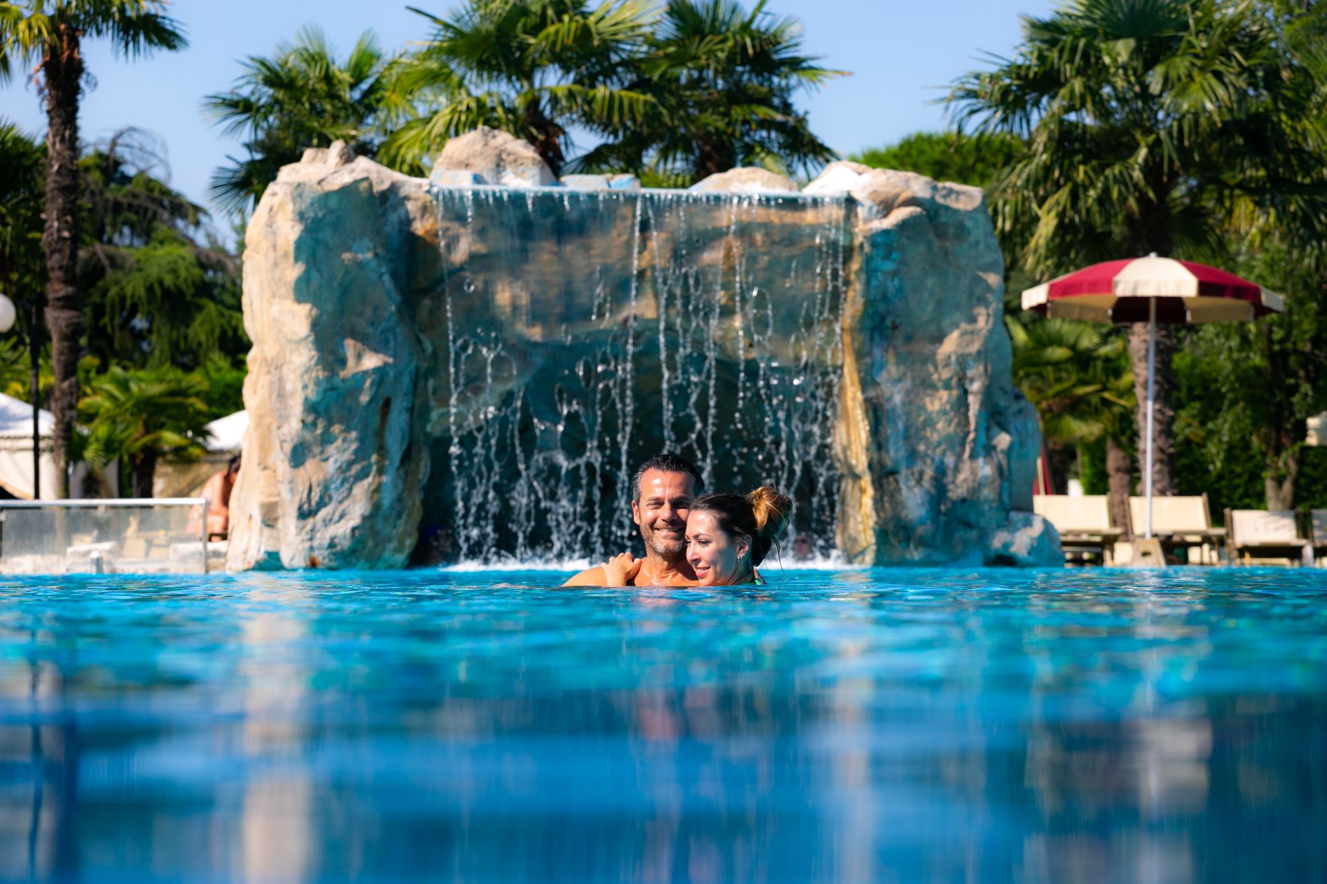 1 Hallenbad (ca. 500 m²) und 1 Freibad (ca. 500 m²), beide mit Thermalwasser und miteinander verbunden, über 50 Unterwassermassagedüsen (geöffnet von 07:00-23:00 Uhr, ca. 34-36 °C), 2 große Whirlpools, Sprudelliegen, 2 Parcours für Venenmassagen, Grotte mit Wasserfall, Kneippbecken, Schwitzgrotte;