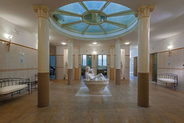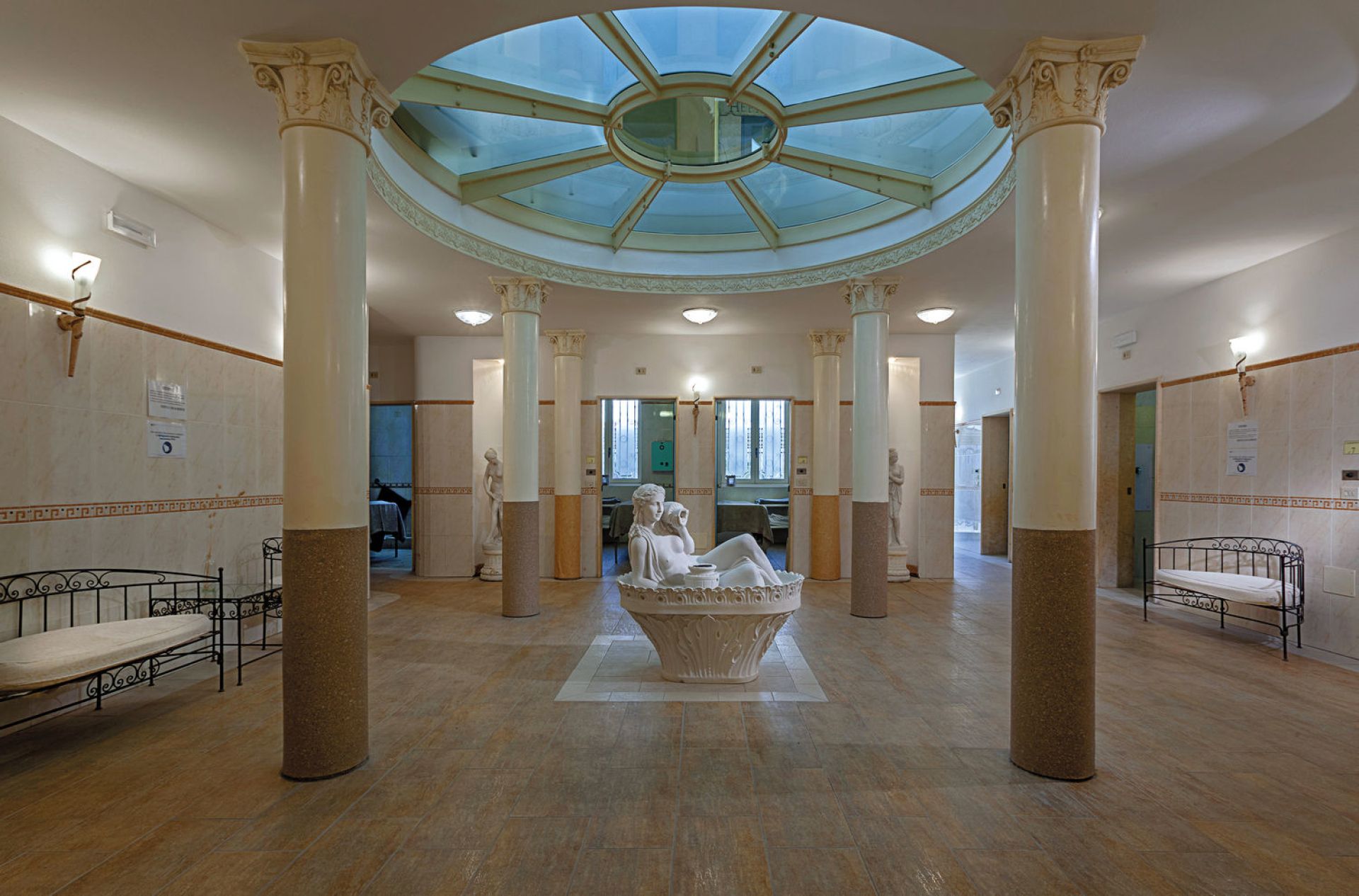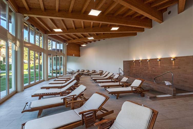 1 Thermalhallen- und 1 Freischwimmbad (34-36°C, geöffnet von 07:30-21:30 Uhr) miteinander verbunden, mit verschiedenen Hydromassage-Möglichkeiten, Kurabteilung unter ärztlicher Leitung und neues Beauty-Center, Schwitzgrotte, Aromagrotte, Sauna;