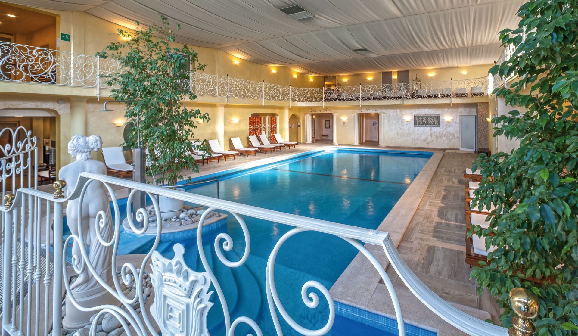 1 Thermalhallen- (ca. 150 m²) und 1 Freischwimmbad (ca. 260 m²) miteinander verbunden mit Hydromassage (geöffnet von 07:30-19:30 Uhr, ca. 32-35 °C), Whirlpool, Gesundheitszentrum mit Kur-, Spa- und Vitalbereich; Schwitzgrotte mit Tauchbecken, Sauna mit Aromatherapie inklusive;