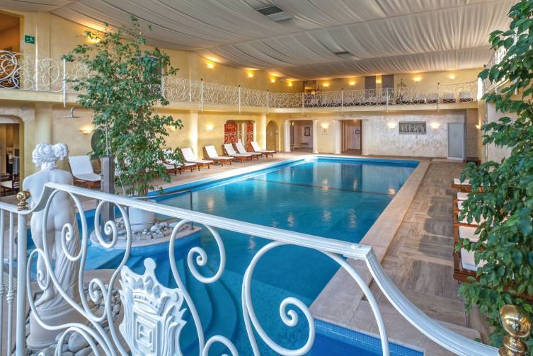 1 Thermalhallen- (ca. 150 m²) und 1 Freischwimmbad (ca. 260 m²) miteinander verbunden mit Hydromassage (geöffnet von 07:30-19:30 Uhr, ca. 32-35 °C), Whirlpool, Gesundheitszentrum mit Kur-, Spa- und Vitalbereich; Schwitzgrotte mit Tauchbecken, Sauna mit Aromatherapie inklusive;