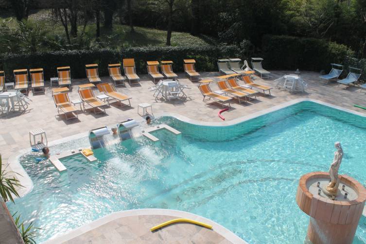 1 Thermalhallen- (37 m²) und 1 Thermalfreischwimmbad (40 m²) miteinander verbunden mit Hydromassage (ca. 32-35 °C, geöffnet von 07:30-19:00 Uhr), renovierte und modernisierte Kurabteilung unter ärztlicher Leitung, Spa-Bereich, Schwitzgrotte, Sauna, Dampfbad; Friedensoase: Türkisches Bad, Finnische Sauna, Pink Salt Tepidarium, Eiswasserfall, Ruhebereich mit Relaxsesseln; gegen Gebühr: Fangotherapien, Inhalationen, Gesichtsbehandlungen, Anti-Aging-Behandlungen, Körperpeelings, Anti-Cellulite- und Anti-Stressmassagen, Lymphdrainagen, Ayurveda, Stone-Therapie uvm.; Badehaubenpflicht; Bademantel & -tuch inklusive.