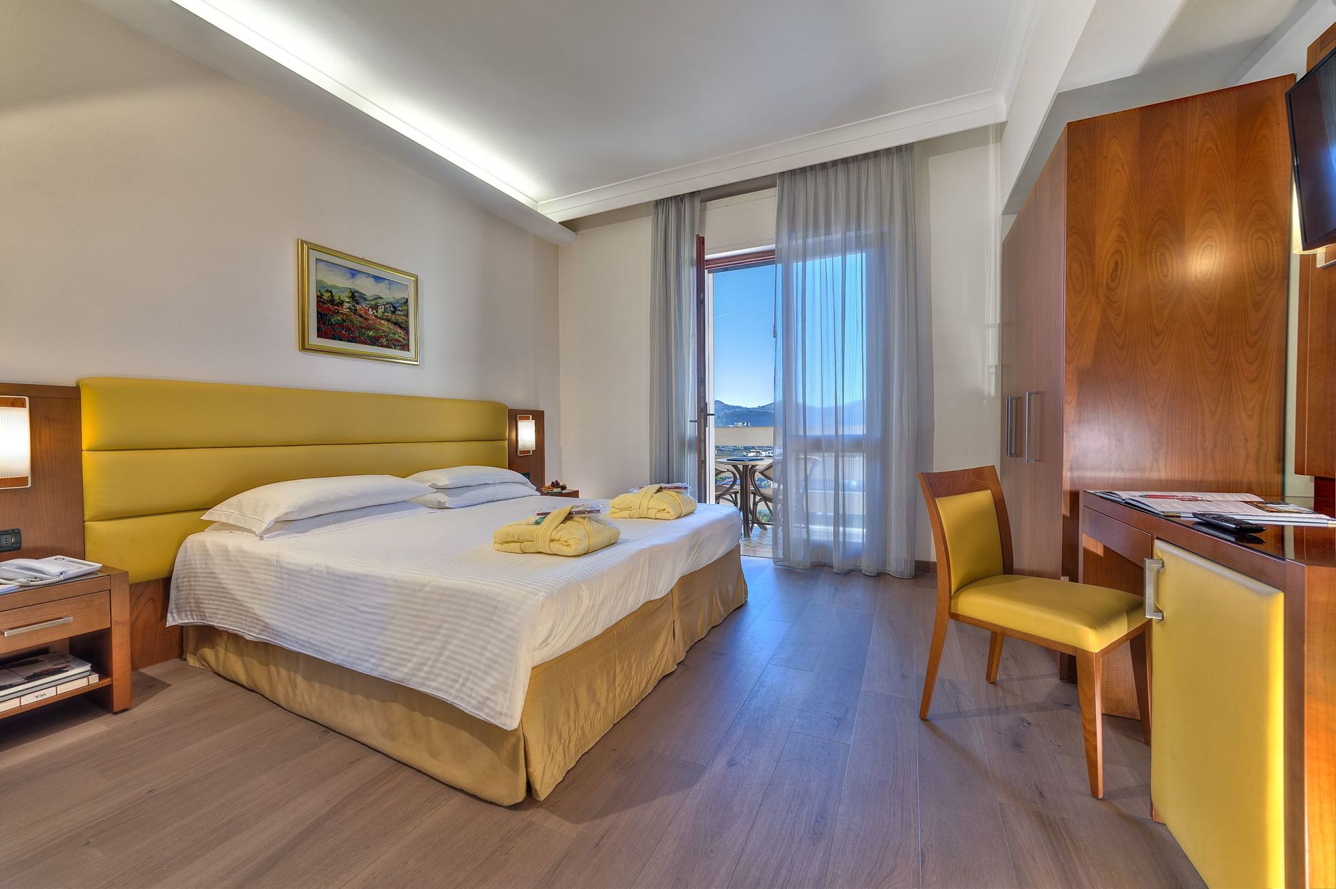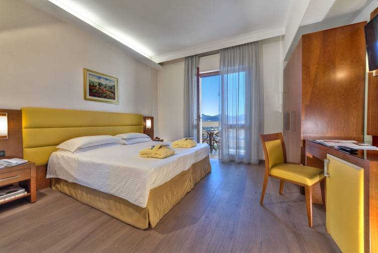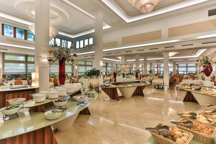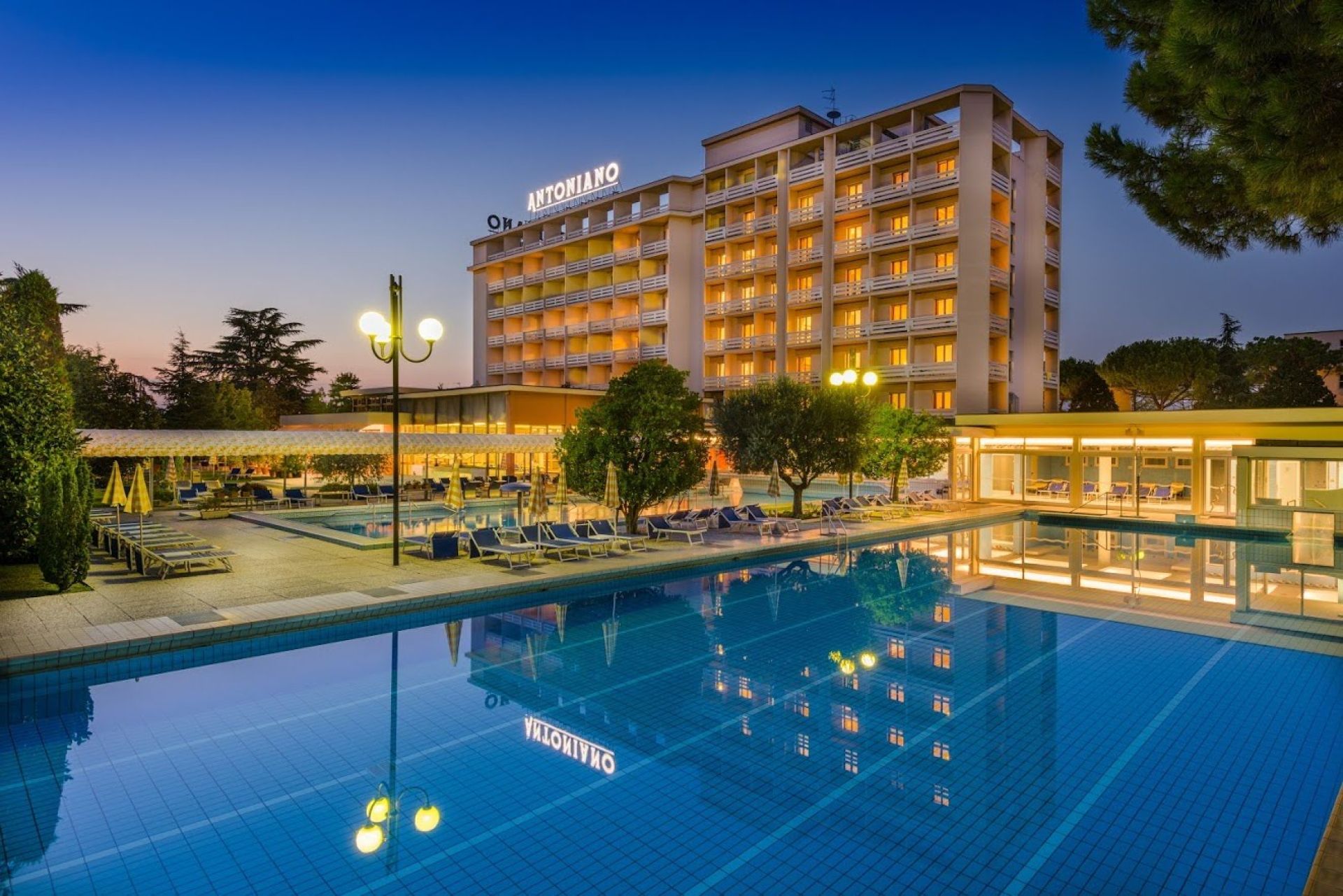 4 Thermalschwimmbäder (Innen- und Außenbecken, 24-32 °C) - Mo-Do von 08:00-22:00 Uhr, Fr-Sa von 08:00-23:00 Uhr, So von 08:00-21:00 Uhr geöffnet, Wellnessbecken mit Wasserspielen und Hydromassage sowie 1 Sport- und 1 Tauchbecken im Freien mit Liegewiese; Finnische Sauna, Dampfbad und Erlebnisdusche; großzügige Kurabteilung für Fango, Thermalbäder, therapeutische Massagen sowie Inhalationen; Wellnesszentrum „Armonia“ mit verschiedensten Körper- und Gesichtsbehandlungen, Friseur sowie Physiotherapie; Bademantel & -tuch inklusive, Badehaubenpflicht.